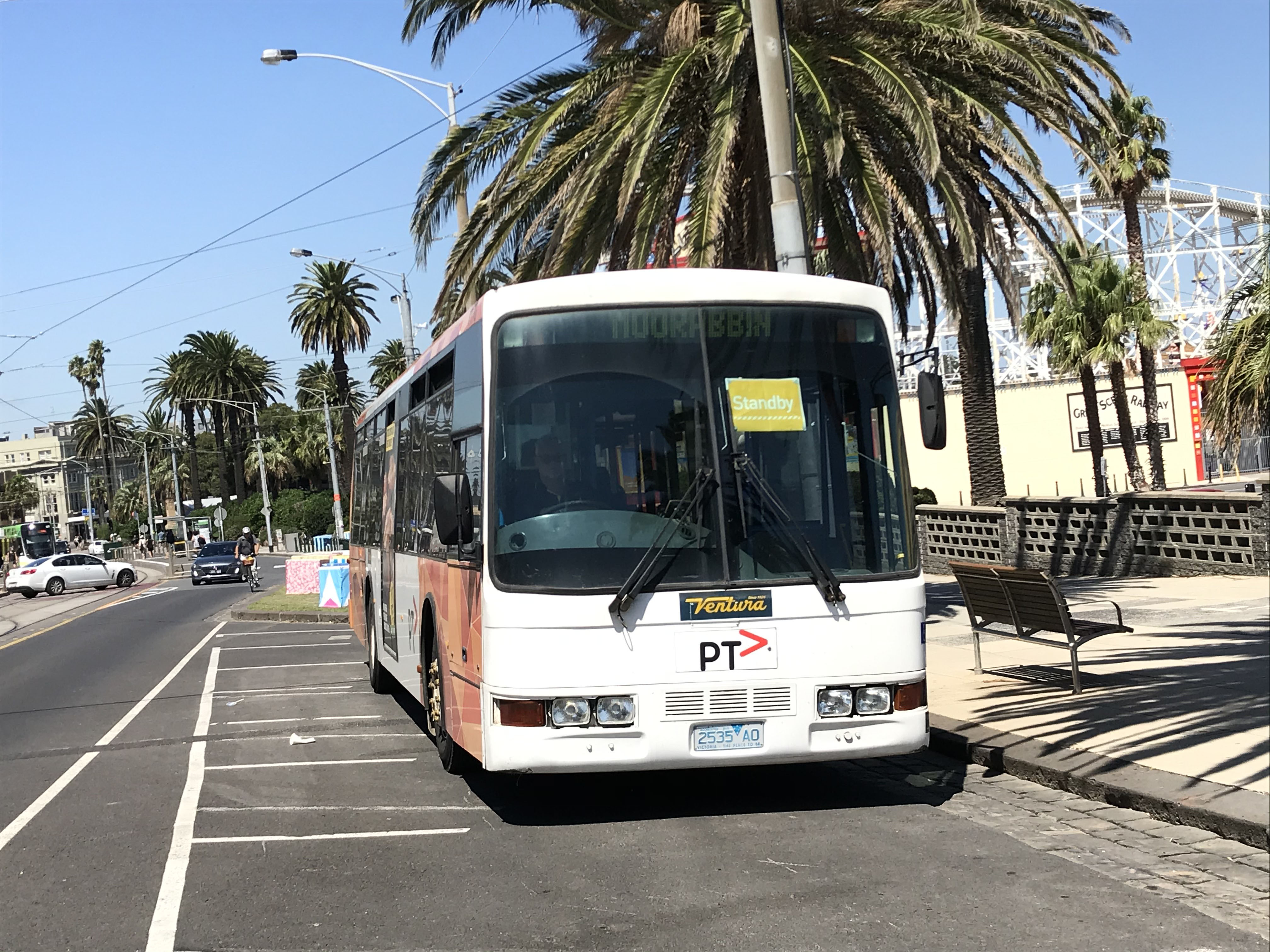 The destination lind suggests sister vehicle 1170 (2535AO) was working out of Moorabbin depot, probably replacing the 96. It is seen in April 2018 on standby at Luna Park in St Kilda.