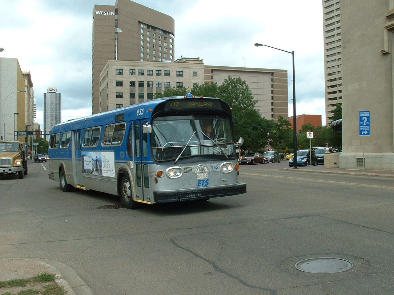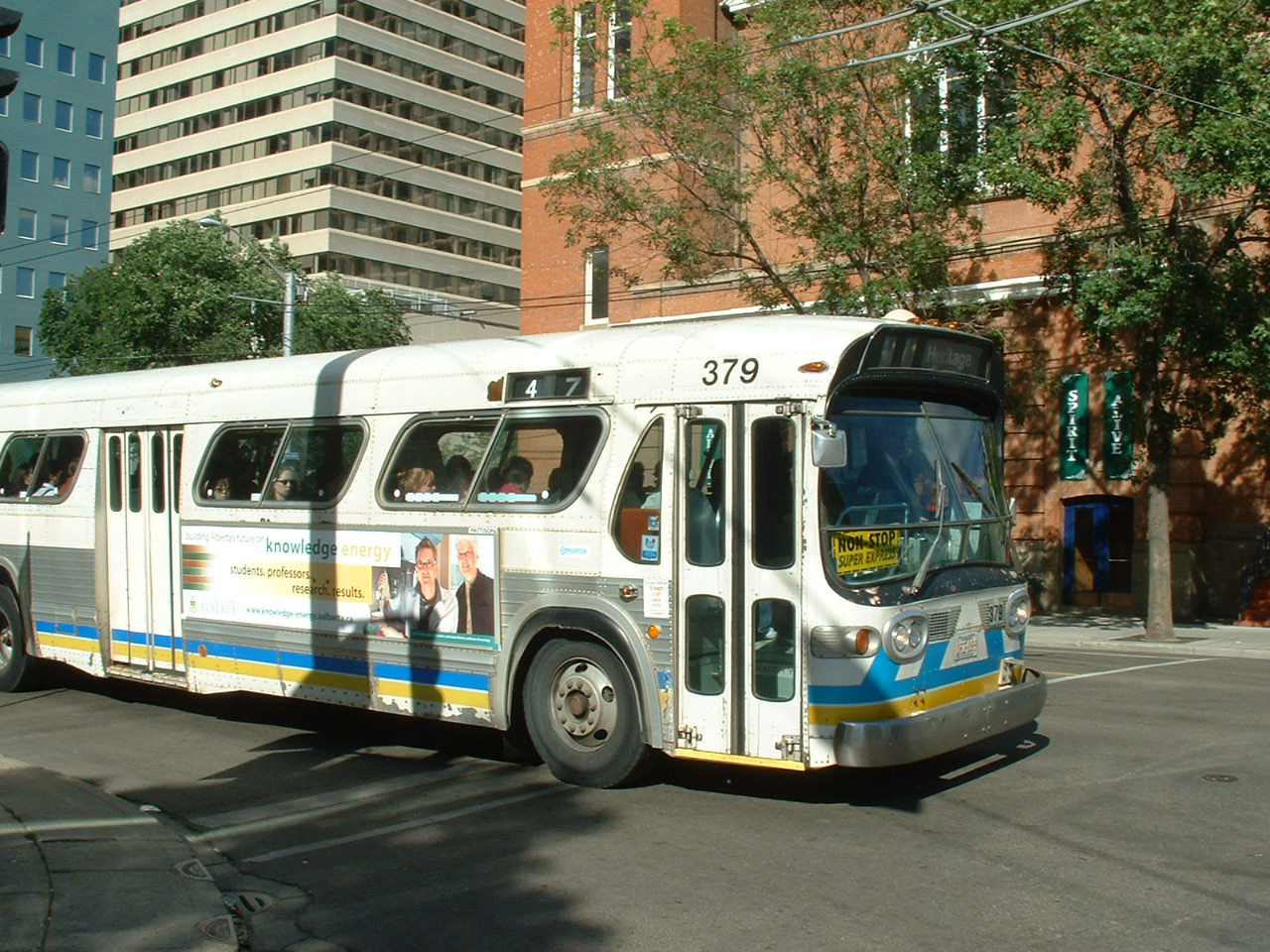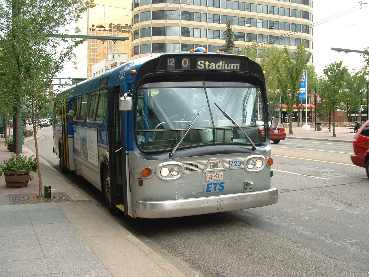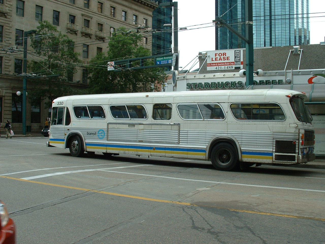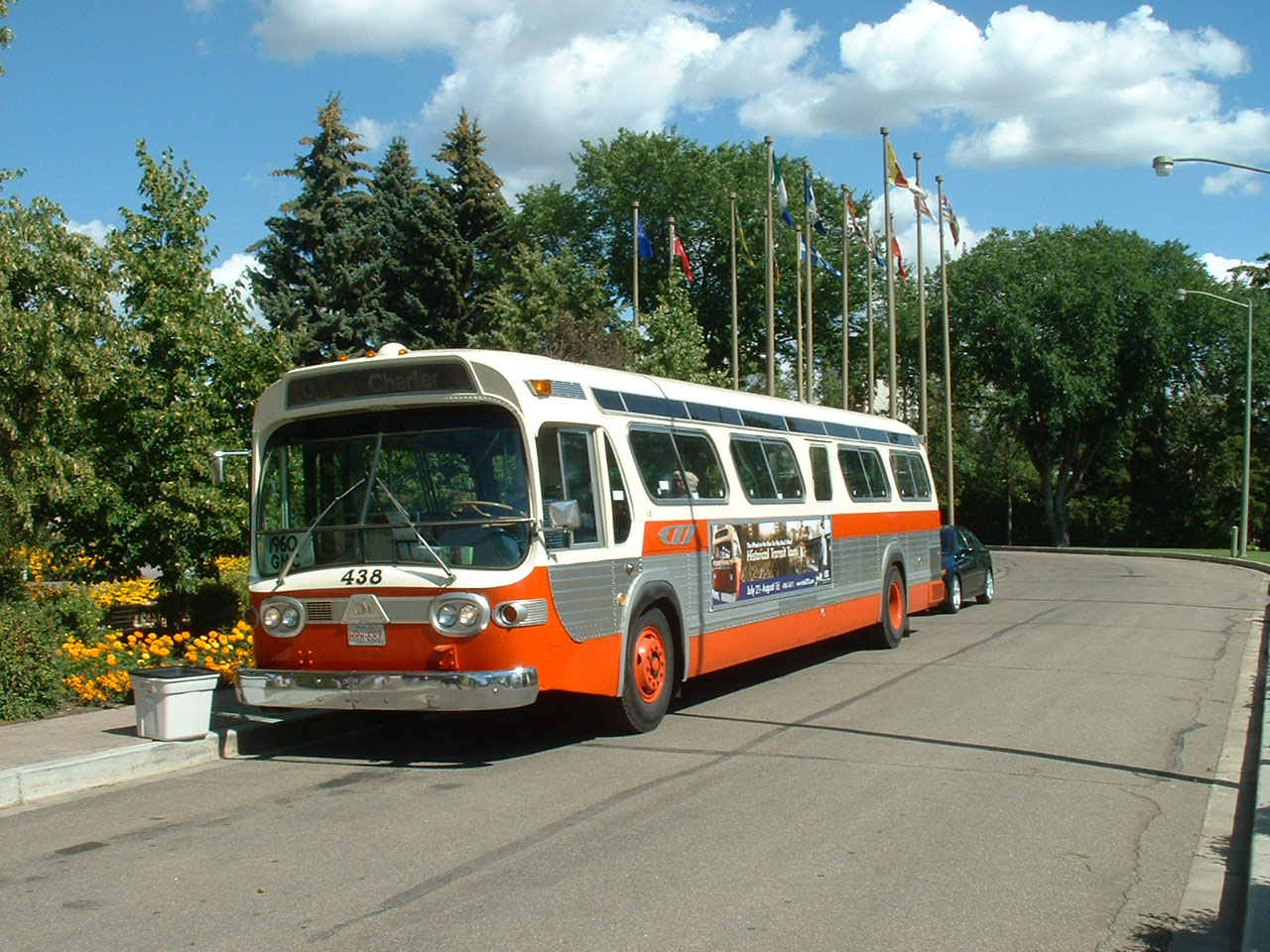 Delivered in 1960 GMC New Look 438 is seen on a tour of Edmonton in August 2007 by classic bus.