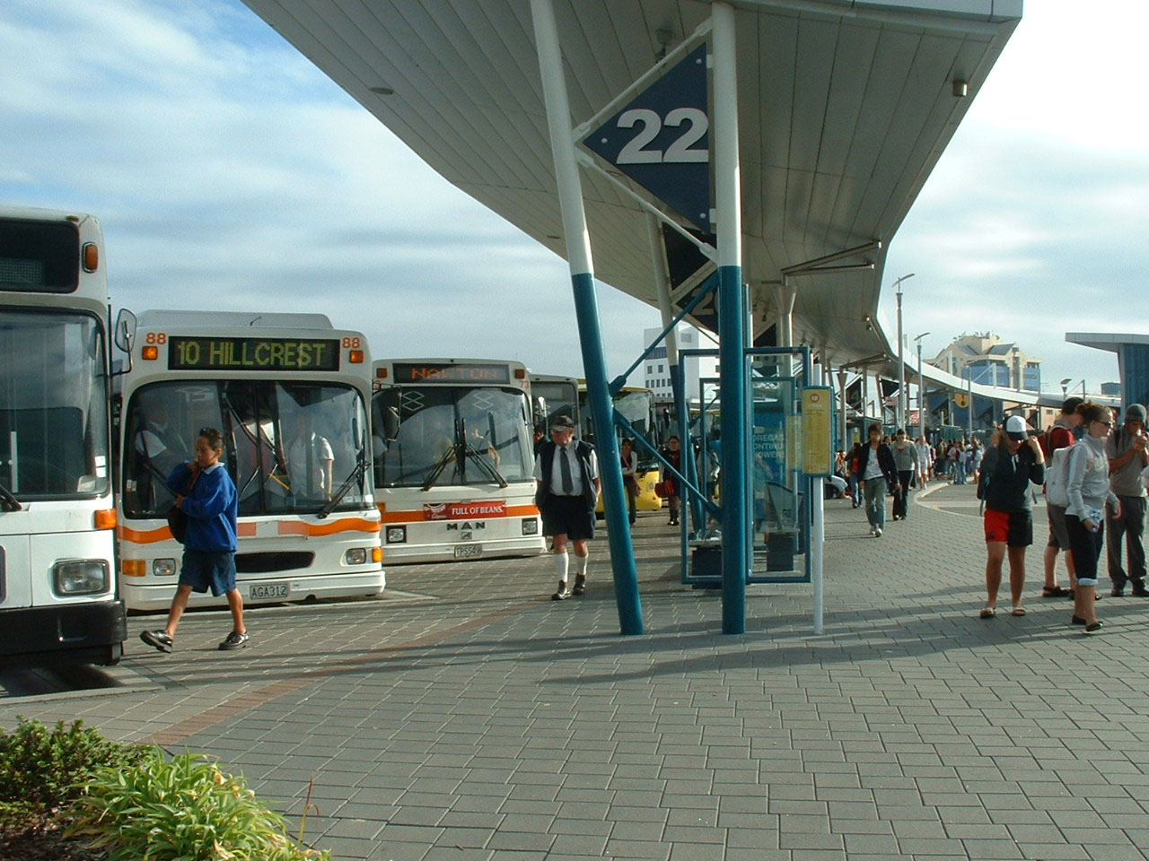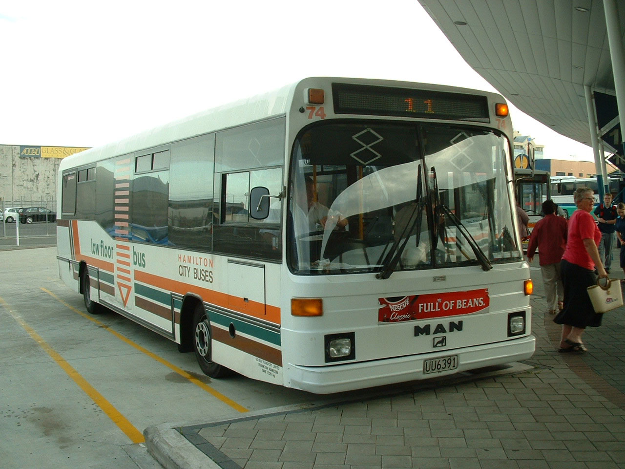A new livery for Hamilton City Buses had been adopted, probably after privatisation and before the Go-bus identity appeared. This Designline bodied MAN 12.223 of 2004, 78 (BTL973), shows it off in the Bus Station. |
