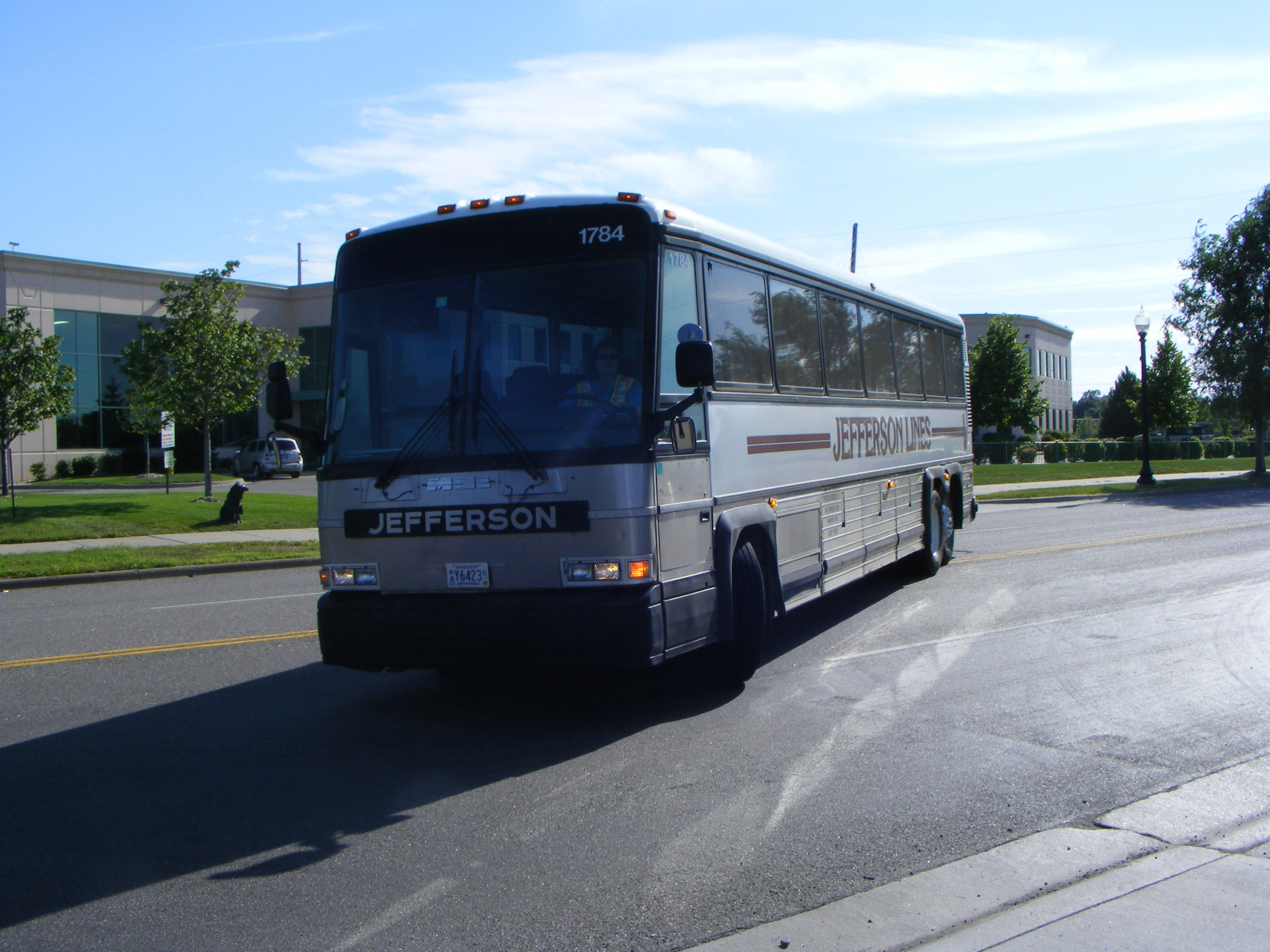 Jefferson Lines are based in Minneapolis but operate a network of express services across Minnesota and the Mid West going as far west as Spokane and south to Texarkana. The company is an avid MCI customer, but the Prevost Le-Mirage XL-II, 1829, was one of a pair bought in 2001 bringing the Prevost fleet strength to around twenty. All are now withdrawn, though the 2025 fleet includes four Temsa TS-35 new in 2012 and more recently a similar number of Van Hools out of a total of over one hundred motorcoaches. The Prevost was seen in August 2011 when all these pictures were taken.