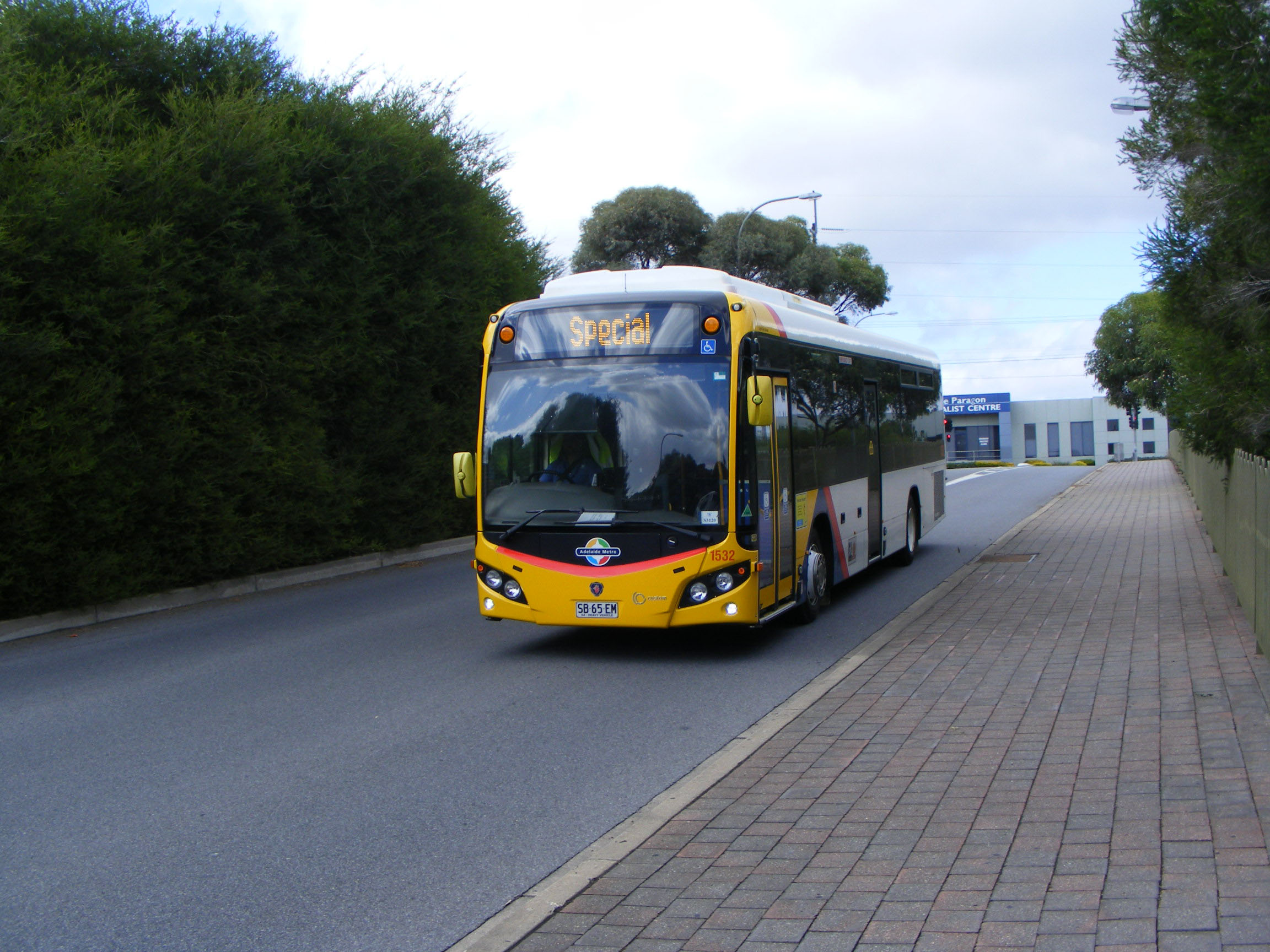 From early 2011, K230UB Scanias arrived with the stylish new Custom CB80 bodywork. No obvious design tweaks for Adelaide. This is 1521 (SB26EL).