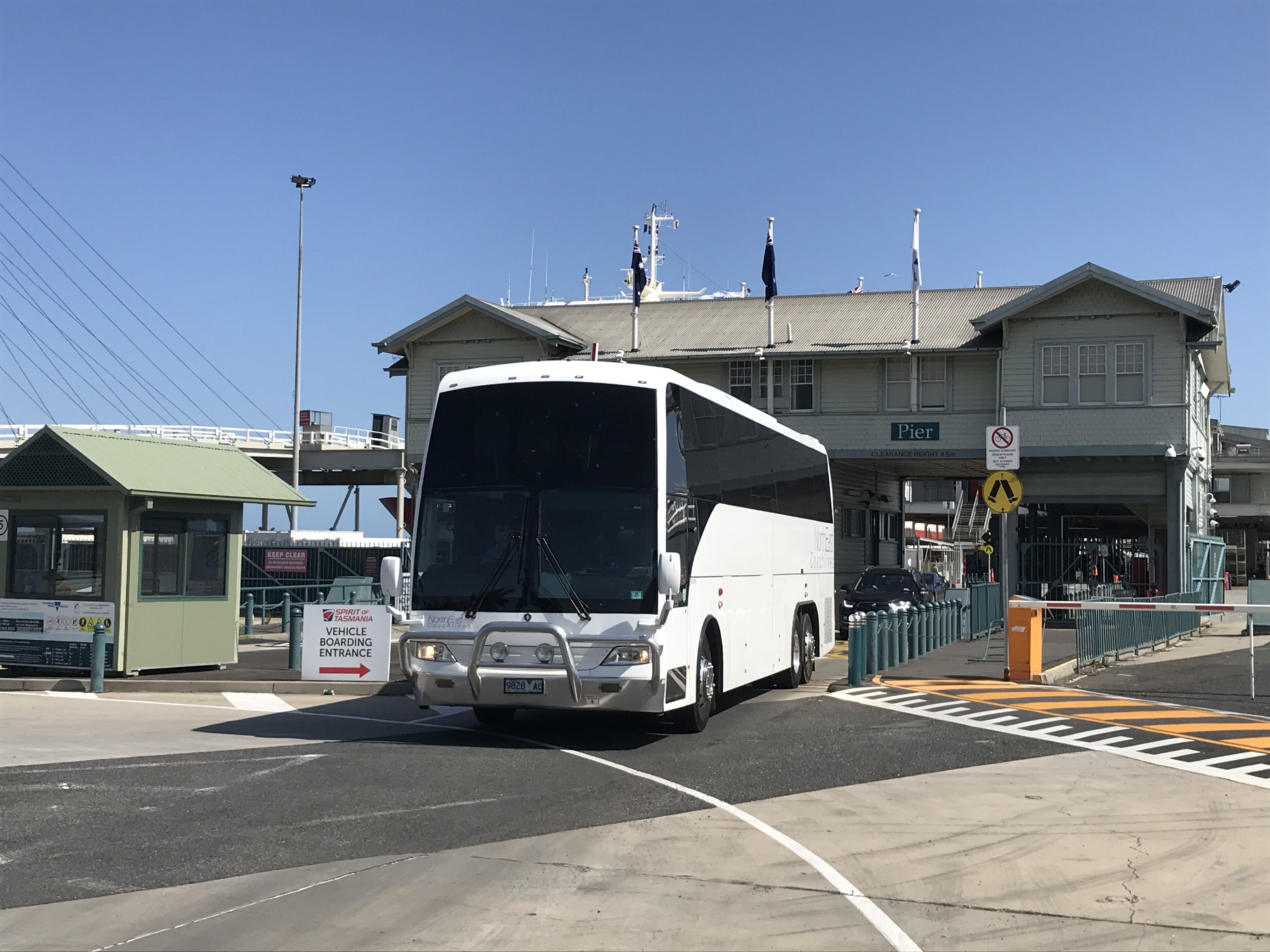 This Coach Design bodied Scania 118 (TV7071) was seen earlier in The Rocks in full llivery. Here it is with subsequent owner North East Coachlines of Wangaratta with rego 9828AO. It is seen leaving Port Melbourne Cruise Ship Terminal in January 2020 assisting with shoreside excursions for cruise passengers.