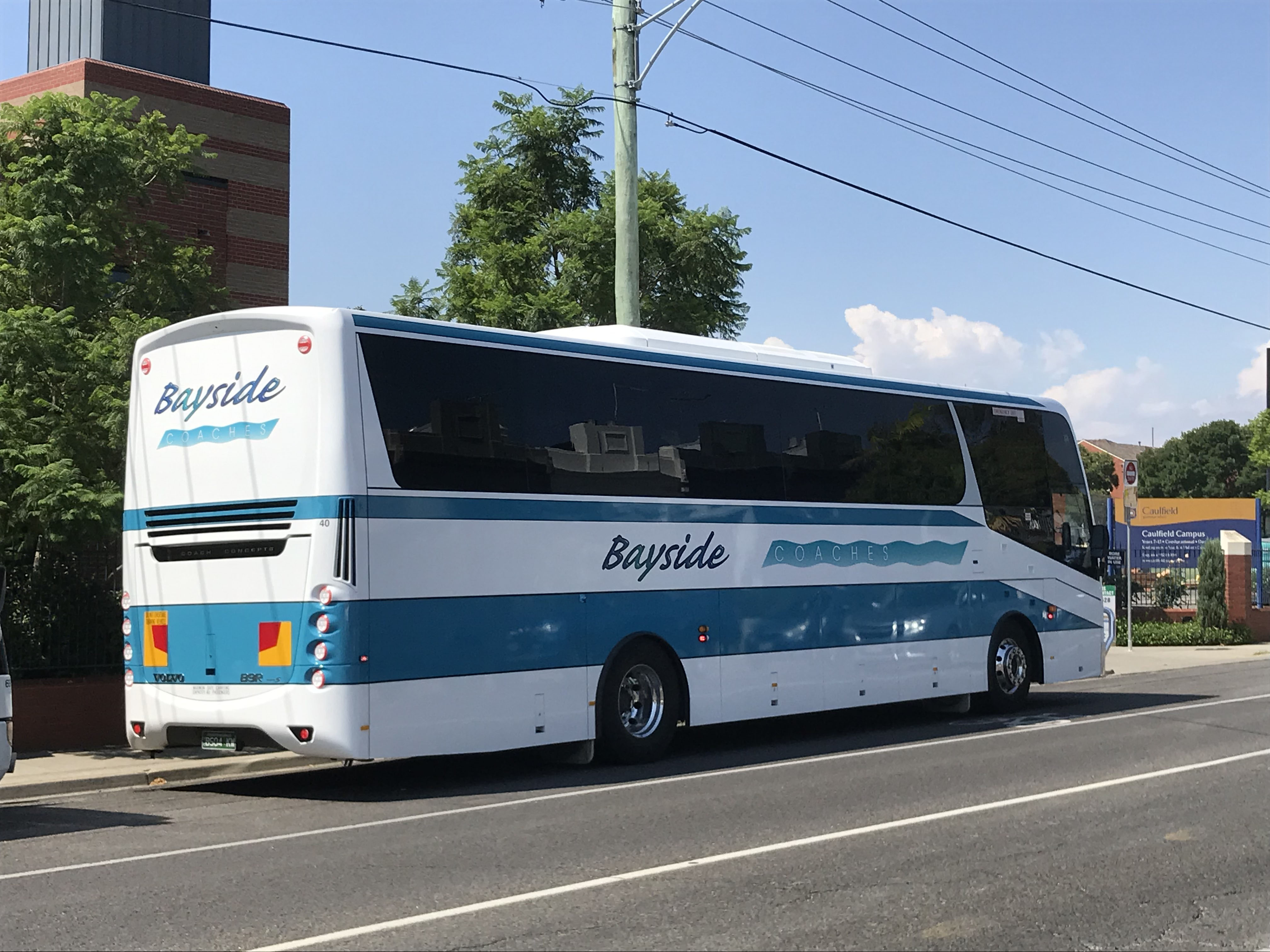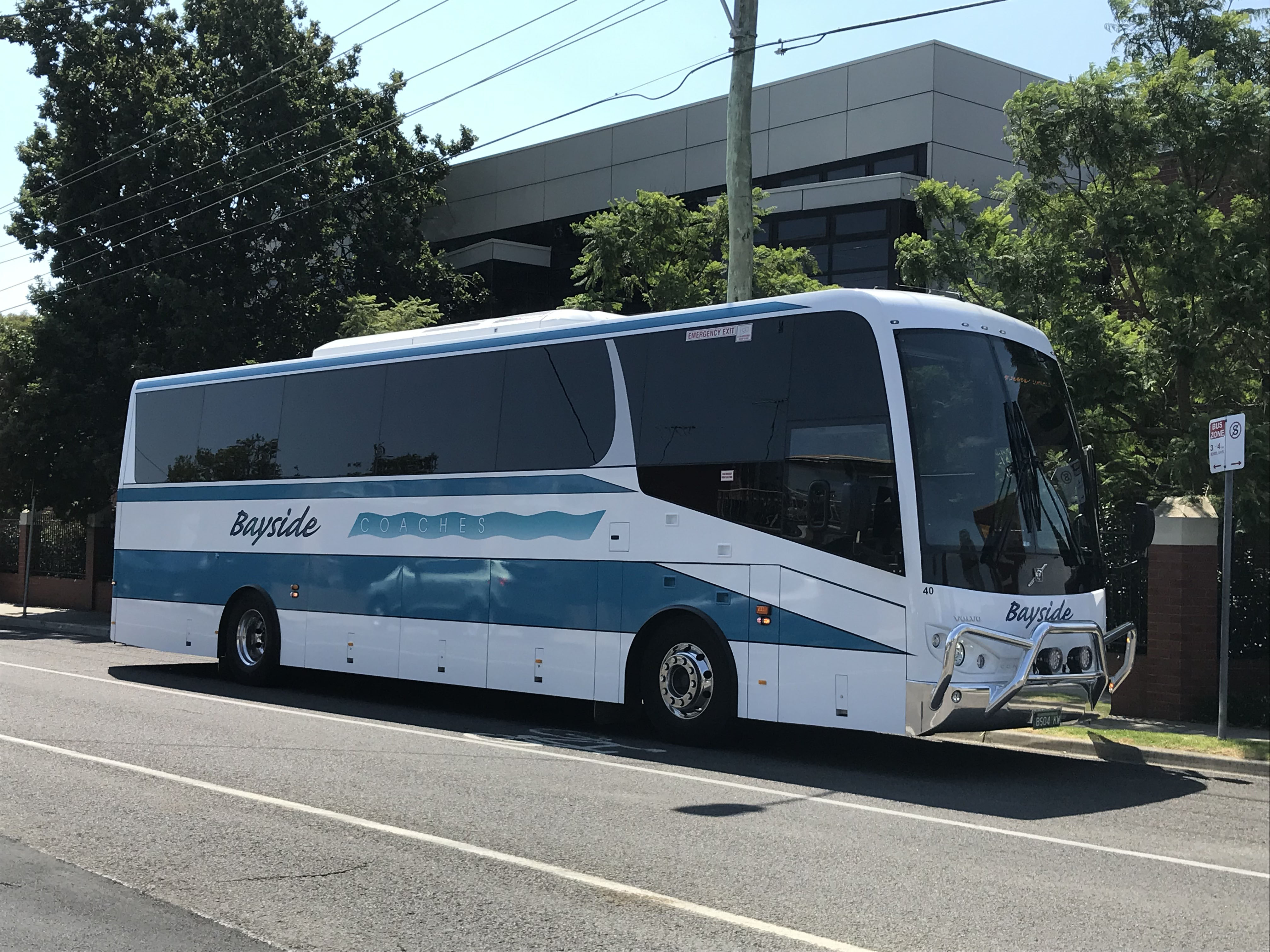 Around 2018 Coach Concepts gave its body a facelift as seen on 40 (BS04KW), a new Volvo B9R awaiting its afternoon school run in ELsternwick in February 2019. Note the new swept back curve to the A pillar.