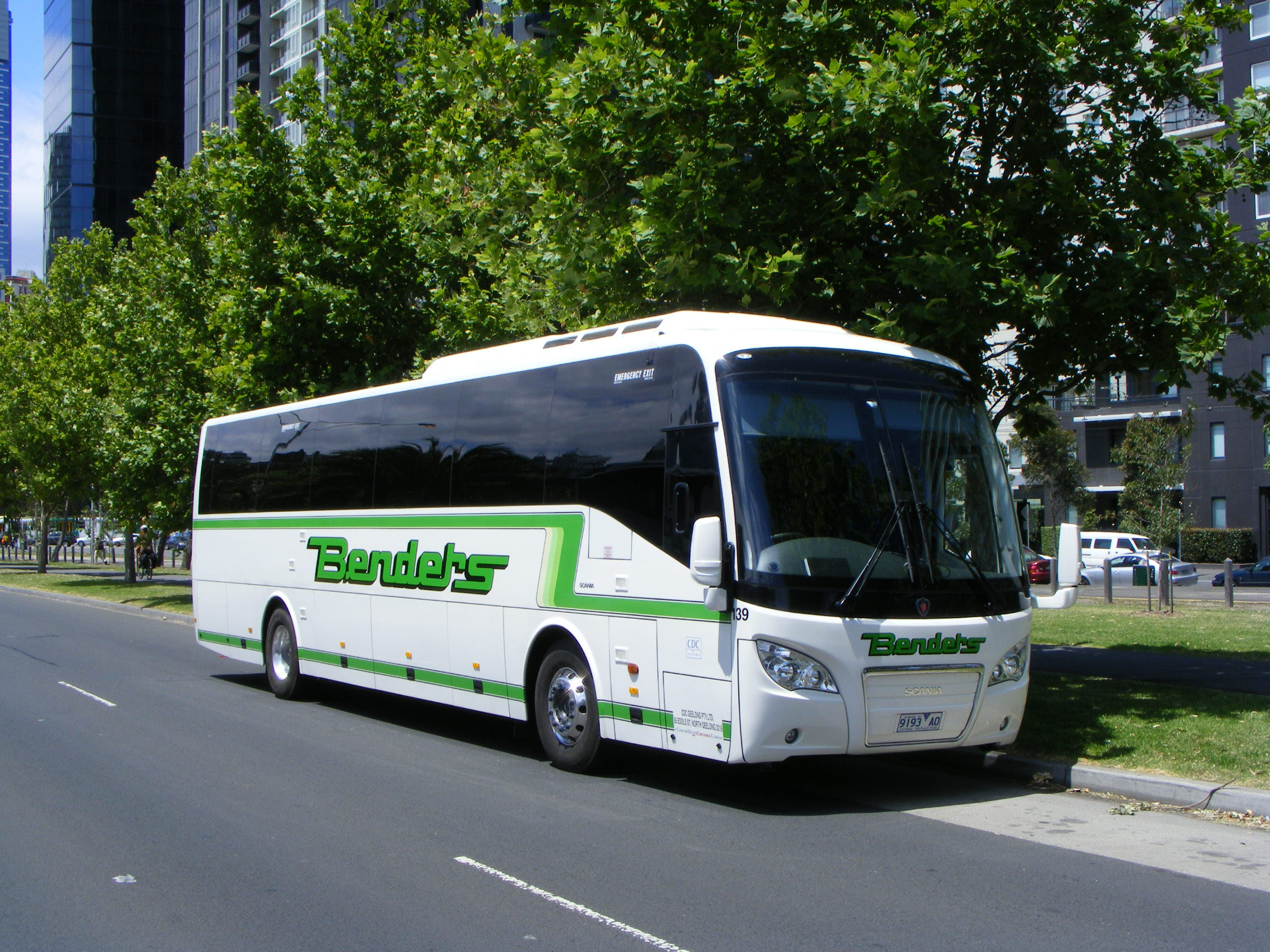 Parked up in Normanby Road by the Melbourne Exhibition Centre in December 2012 is Higer A30 bodied Scania K320IB 139 (9193AO).
