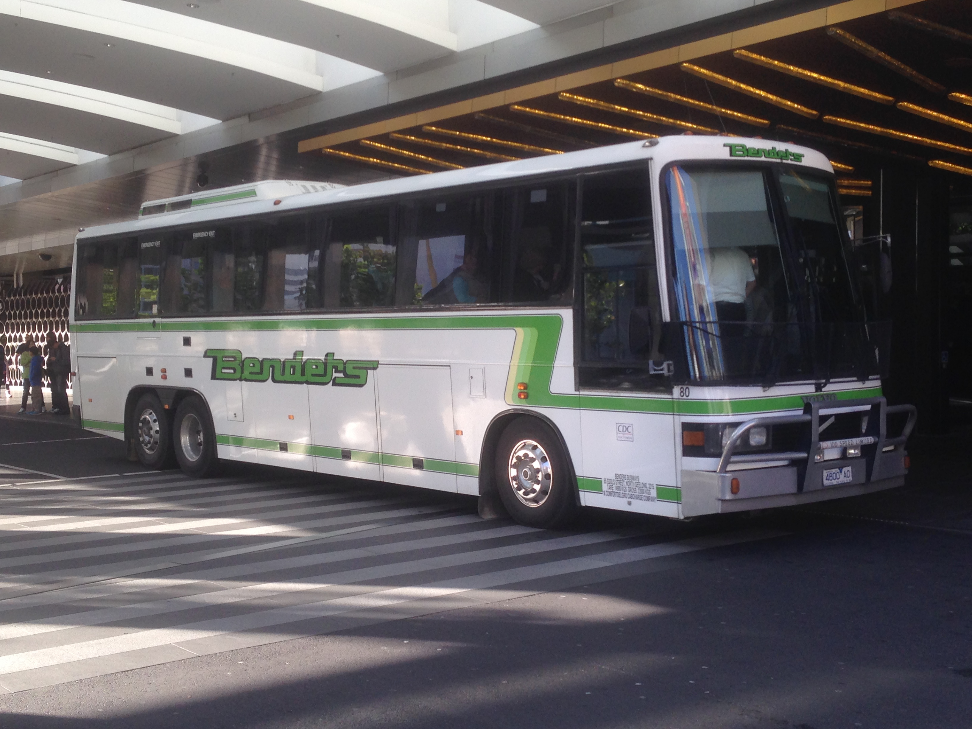 Not so much secondhand, but passed down through several hands. This PMCA Apollo bodied Volvo B12R, 80 (4800AO) was new to the Australian Army. They sold it to Busabout in New South Wales before it passed to fellow CDC subsidiary, Western. The coach is seen outside the Crown Casino in Melbourne in April 2014.