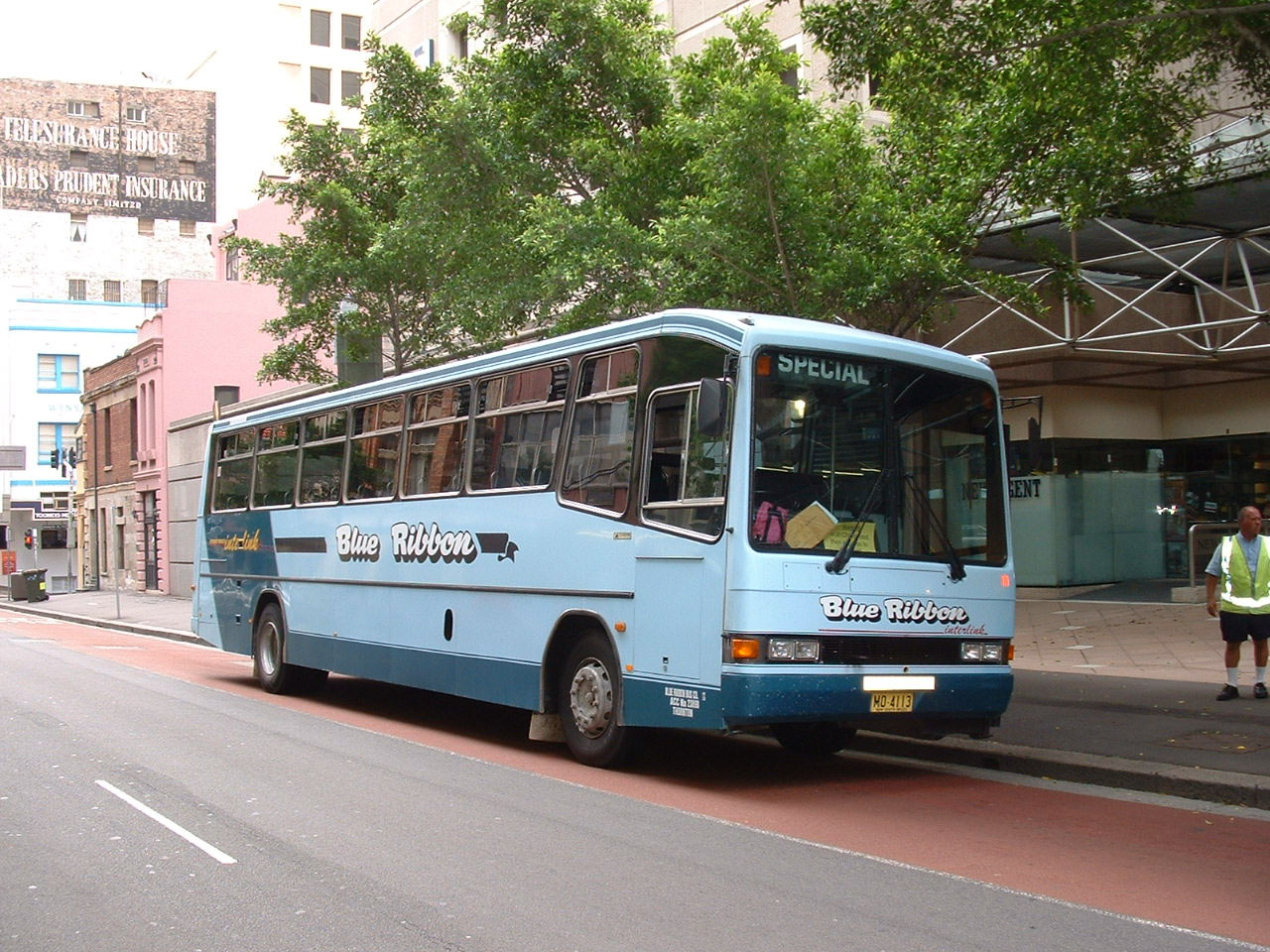 Mercedes 109 (MO4113) is as old as the O400 above and also bodied by Custom. However this 57 seater is seen in Sydney on rail replacement duties during major track work between Christmas and the 2004 New Year.