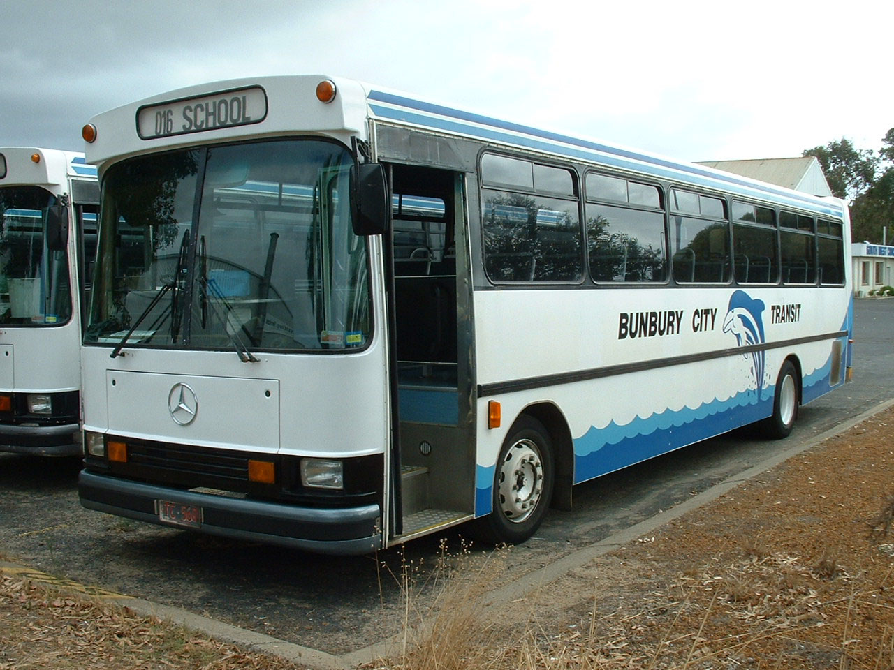Mercedes are the standard fare for Bunbury. This smart example used on school routes, TC560, is an H Porter TransPORTER III bodied OH1316, another April 2006 depot picture.