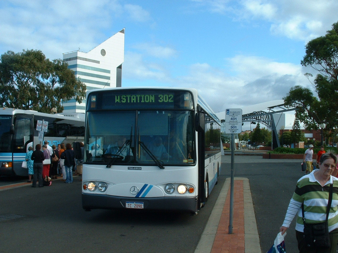 Similar TC2090 loads on a centre bay. Behind is a South West coach. South West was the contractor for Bunbury City Transit back in 2006 and the two fleets shared depot and maintenance facilities. |