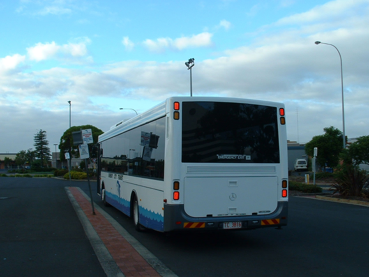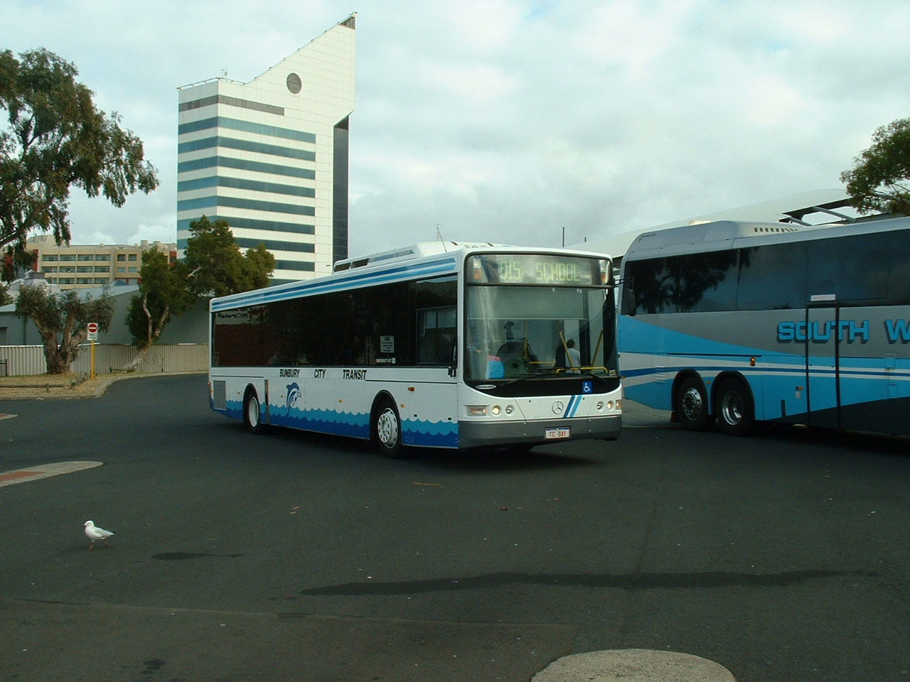 Latest additions to the Bunbury fleet in 2005 were these smart Mercedes O500LE buses with Volgren's CR228L body. Here TC041 is seen alongside one of sister fleet, South West's, Mercedes coaches. The bus passed to Swan Transit's ownership as 810 (UQB810) and later moved to TransBusselton. |