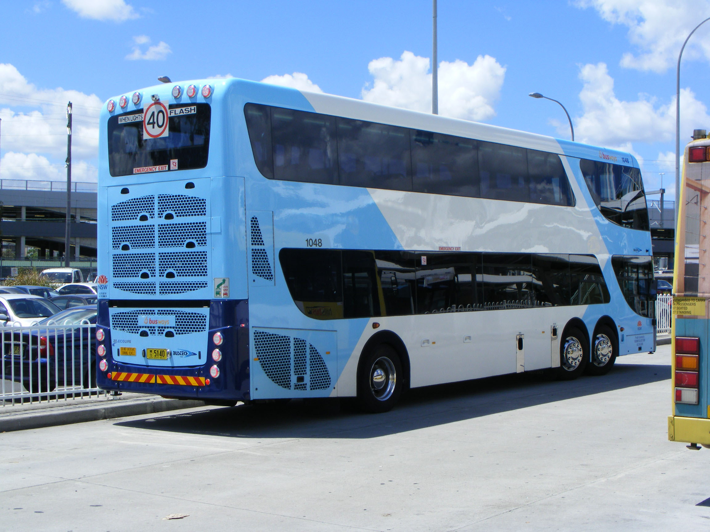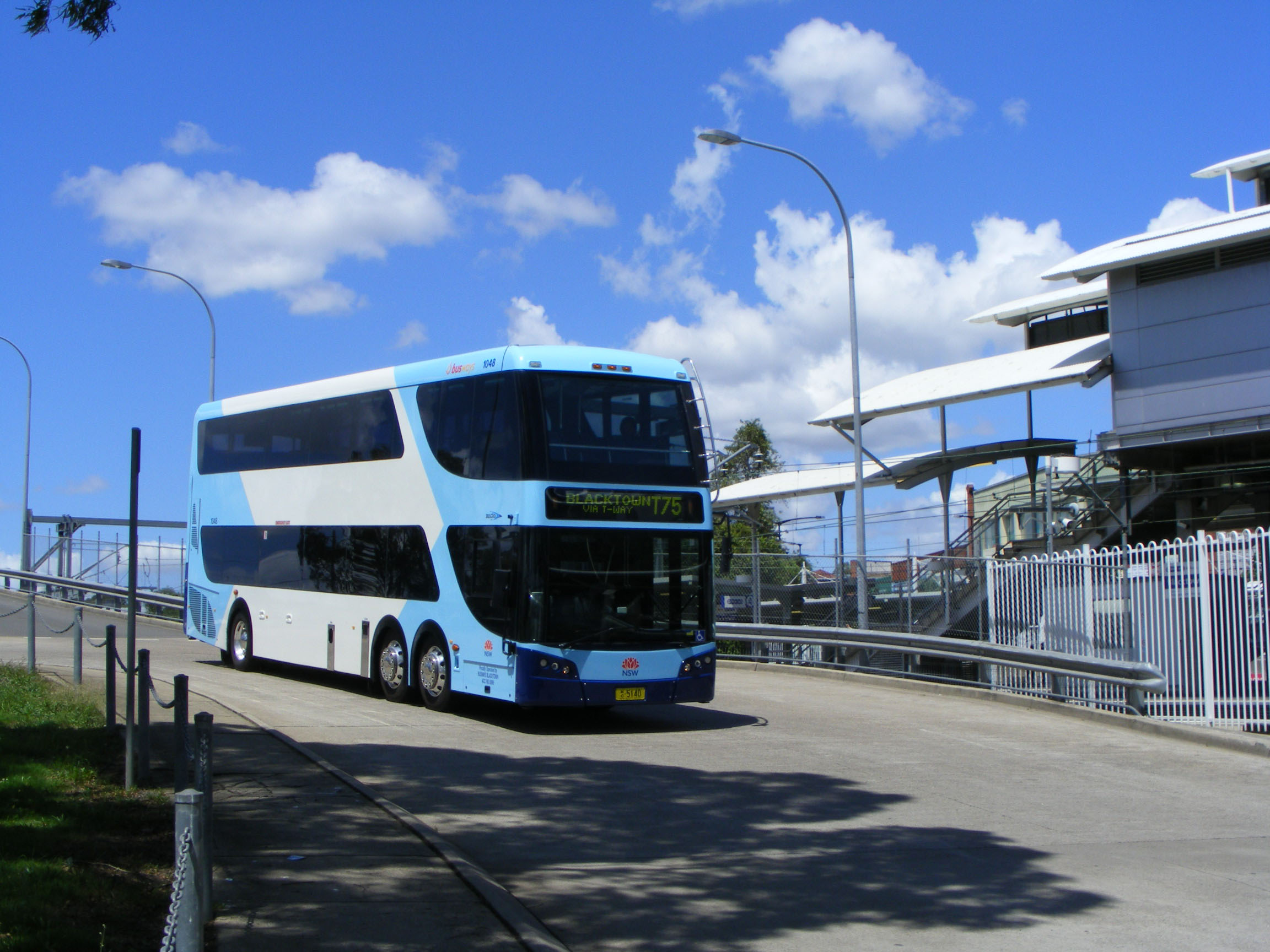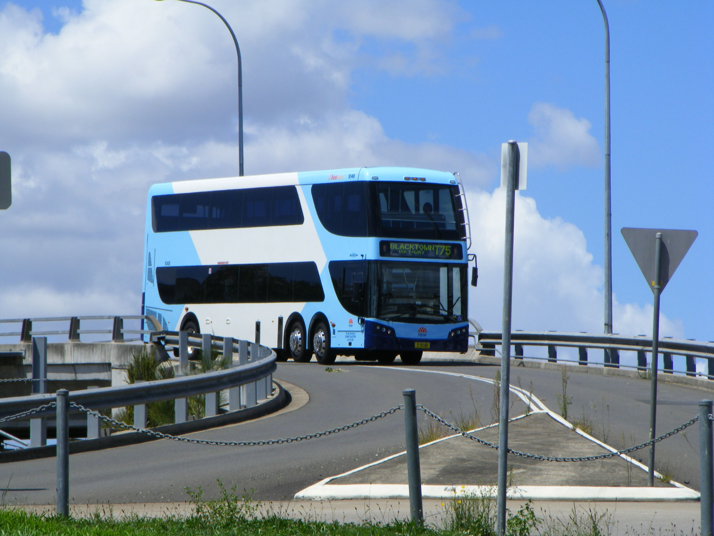 Returning to Blacktown Station, the decker takes the buses only bridge over the rail tracks and makes an impressive site as it breasts the crest of the elevation.