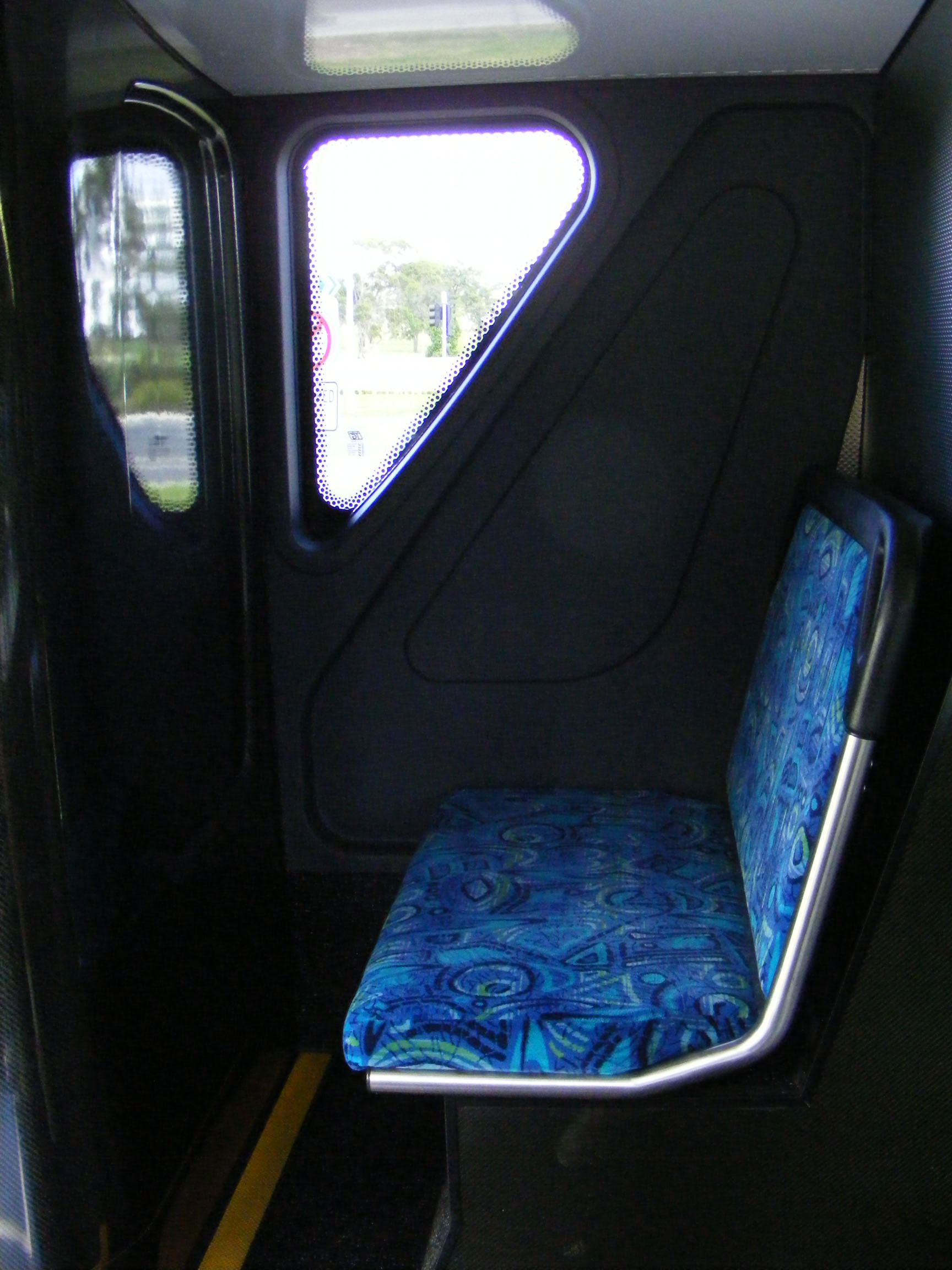 Opposite the rack and under the staircase is an Enviro style seat behind the driver.