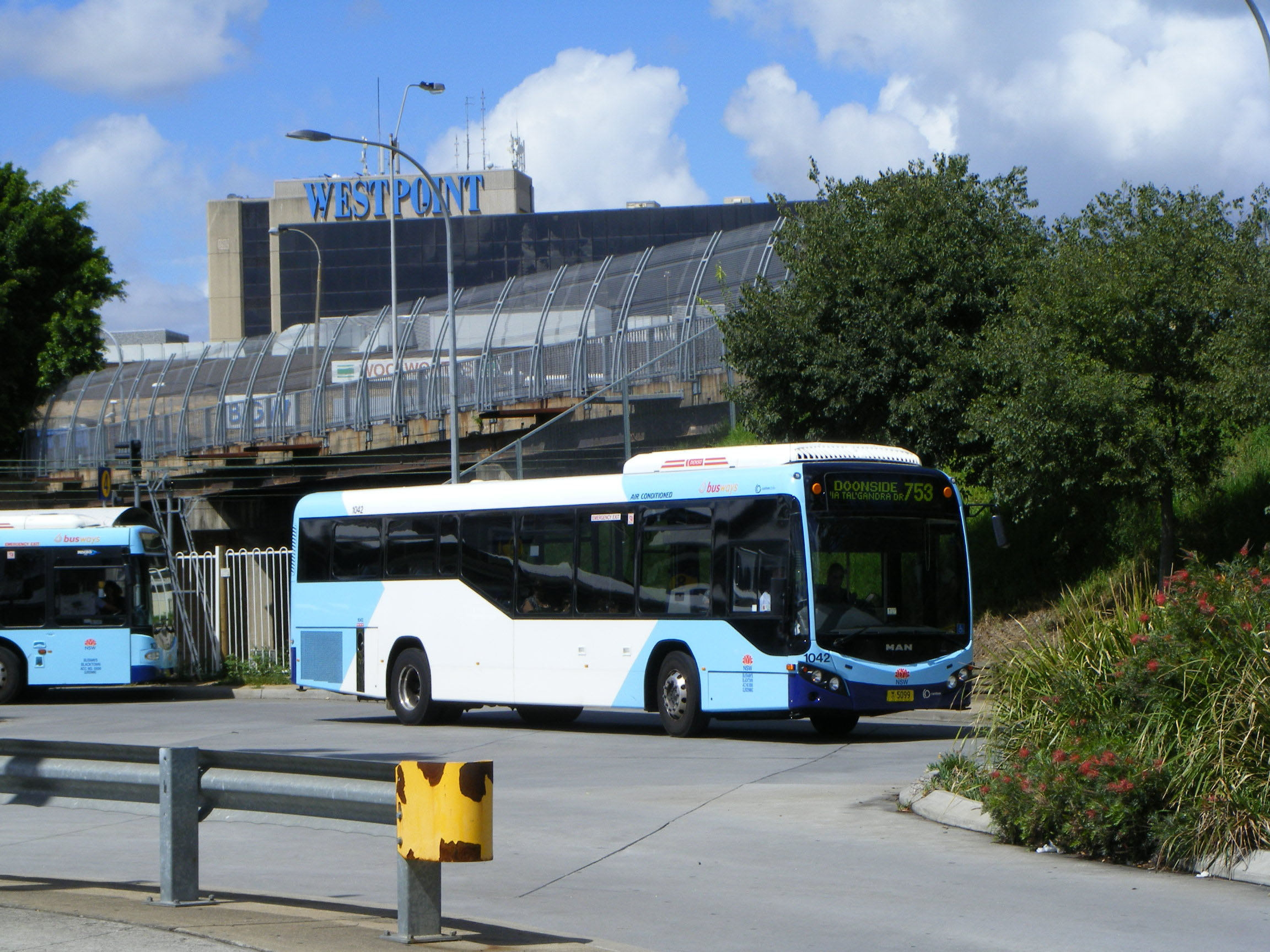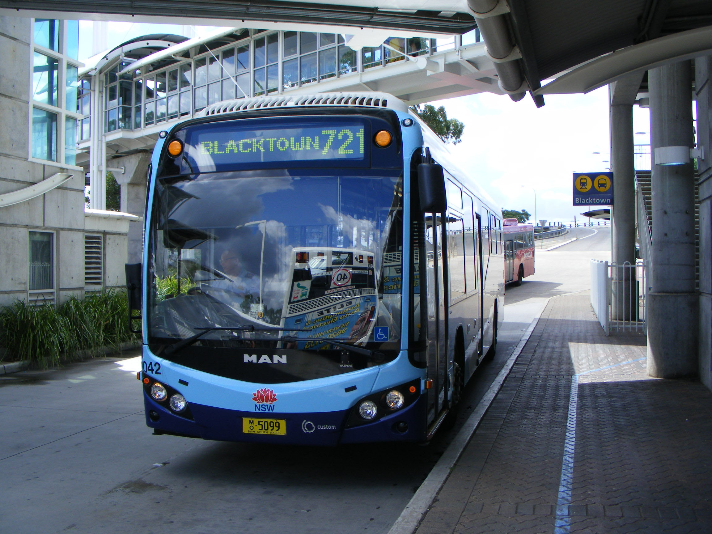 Bustech VST MAN 18.320s have also entered service with Busways, foresaking Custom, at least partially. This is a view of 1024 (MO5083) as it takes the ramp out of Blacktown Bus Station.