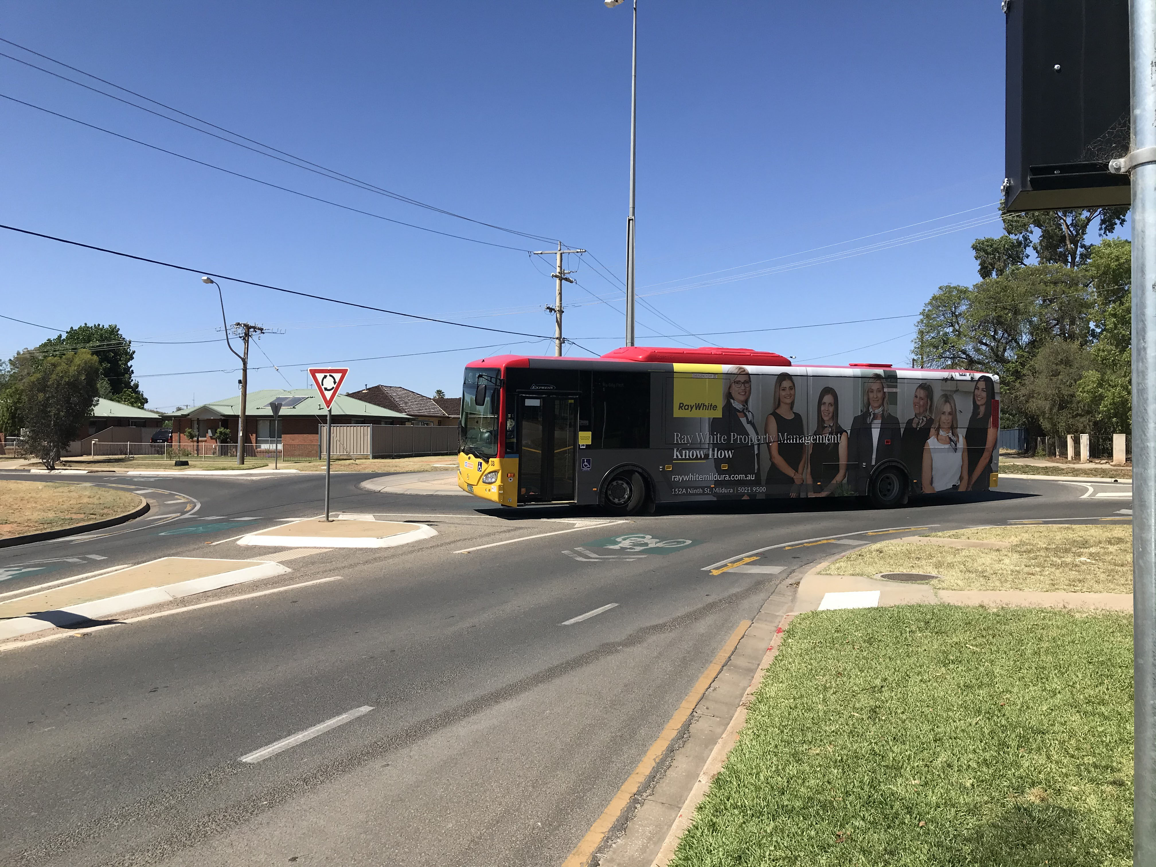 Mercedes 33 again weaving its way through a residential area.