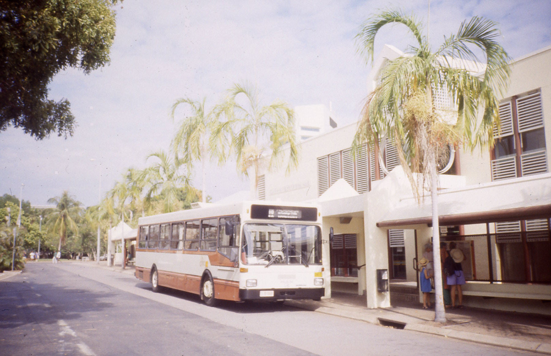 Two 1994 Volgren bodied MAN SL202 were acquired from Darwinbus by Busabout in Wagga Wagga. Here is 79 (MO 8 079) at work in Darwin and clearly badged as MAN but both buses boast Mercedes badges in Wagga Wagga. The bus, seen in August 2005, was an all over advert for Vocational and Educational training (VET). |