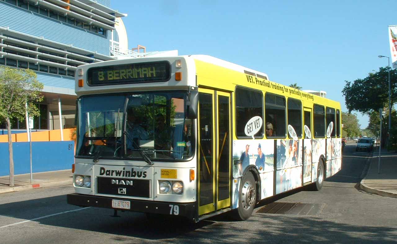 A rear view of Darwinbus 79 near the city bus station. |