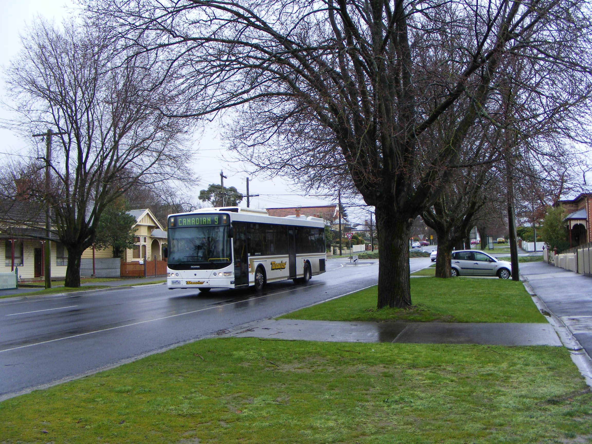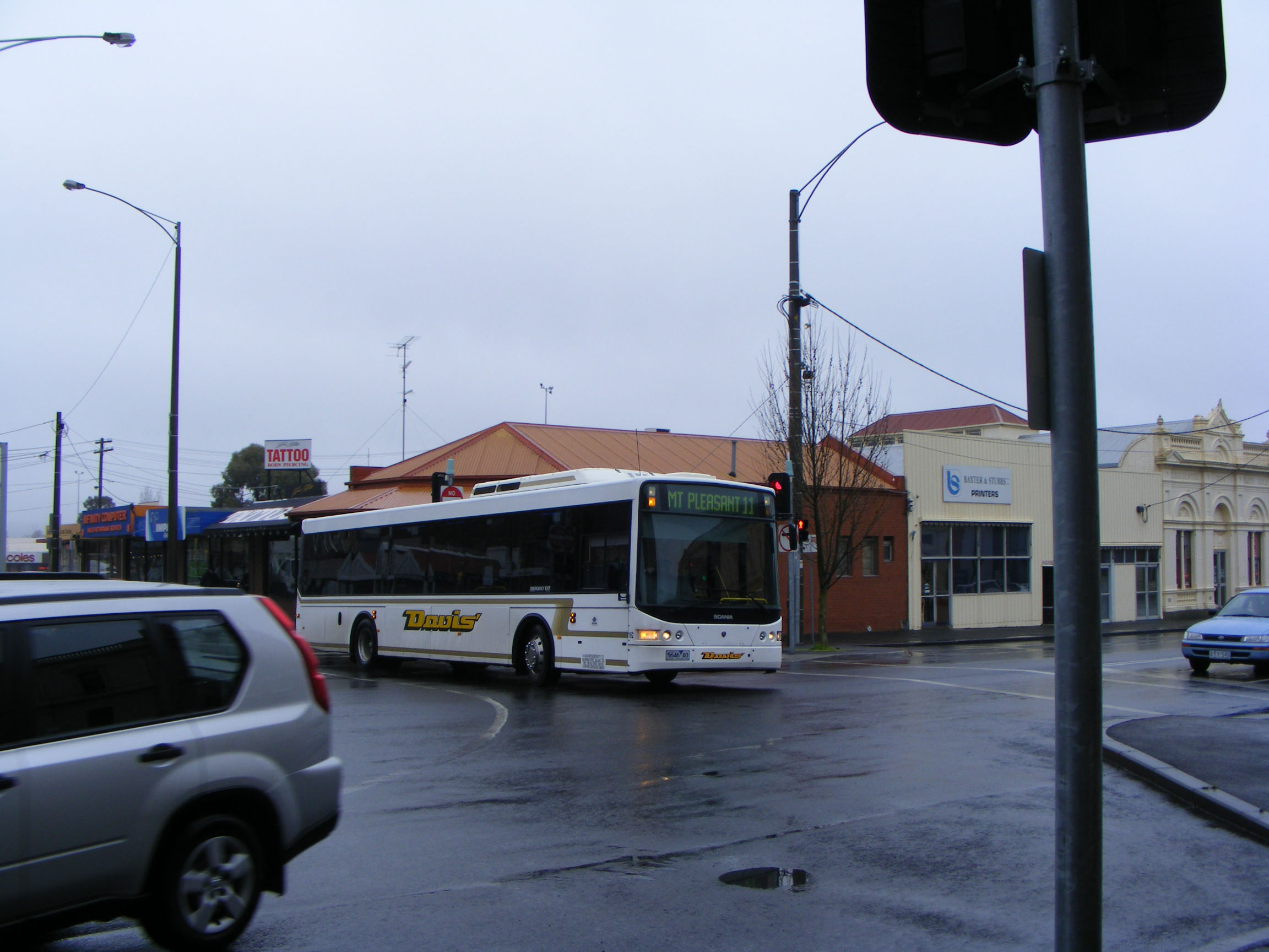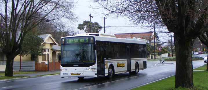 Seen in the town centre is Scania L94UB/Volgren CR228L 167 (6081AO). The bus was just over two years old when seen in August 2008.