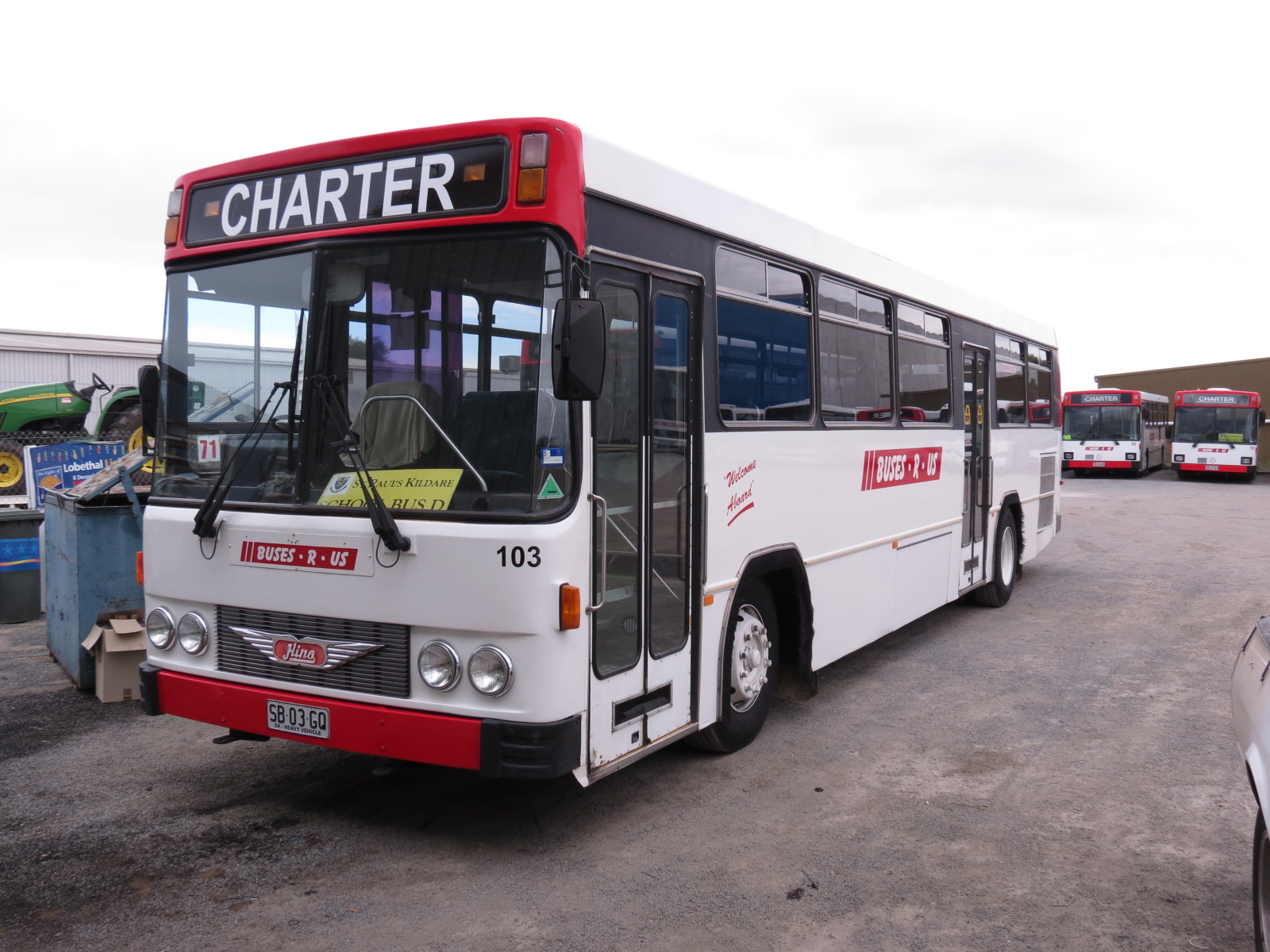 With BUSES-R-US in Adelaide was former 21 (4211AO), a 1991 Hino RG197K with Newnham bodywork seen at their depot in March 2014 as 101 (SB07FS). |