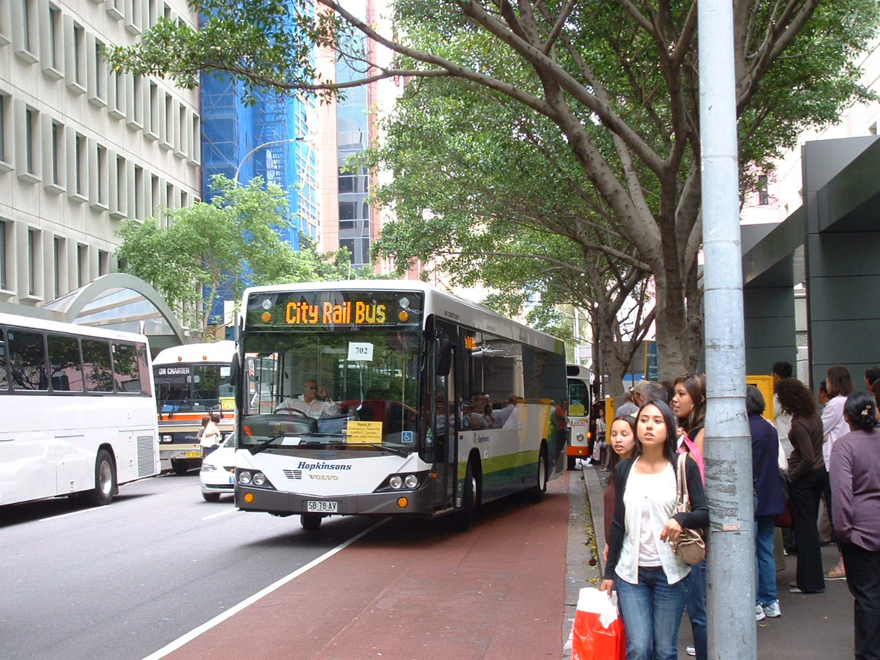 With temporary South Australia rego SB78AV and fleet number 4, this Custom C60 Evo II bodied Volvo B12BLE is seen on rail replacement work at Wynyard Station between Christmas and New Year in 2007. The bus later became MO5329 and later still 1284 with Transit Systems.
