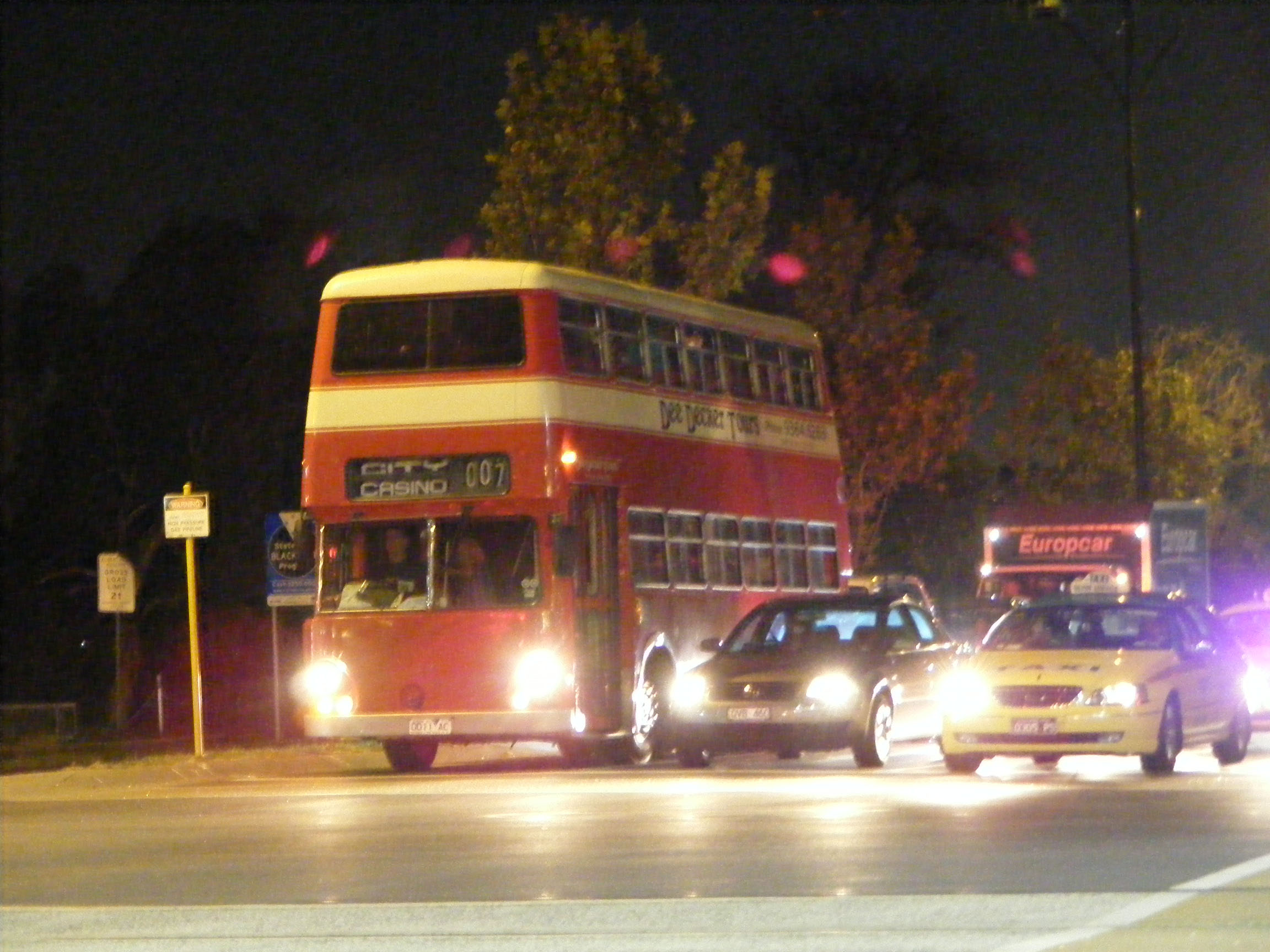 Seen on Fitzroy Street in St Kilda in April 2010 was Dee Decker's former Sydney Atlantean 1067 (MO1067). The bus, then 0011AC and named Noddy, was a "party bus" regular in Melbourne. When it left Sydney it joined Kirklands of Lismore as their 146 (MO9396) and spent a while with Dinner on the Decker in St Kilda before passing to the Yallourn Power Plant in the La Trobe Valley before returning to Melbourne with Dee Decker.