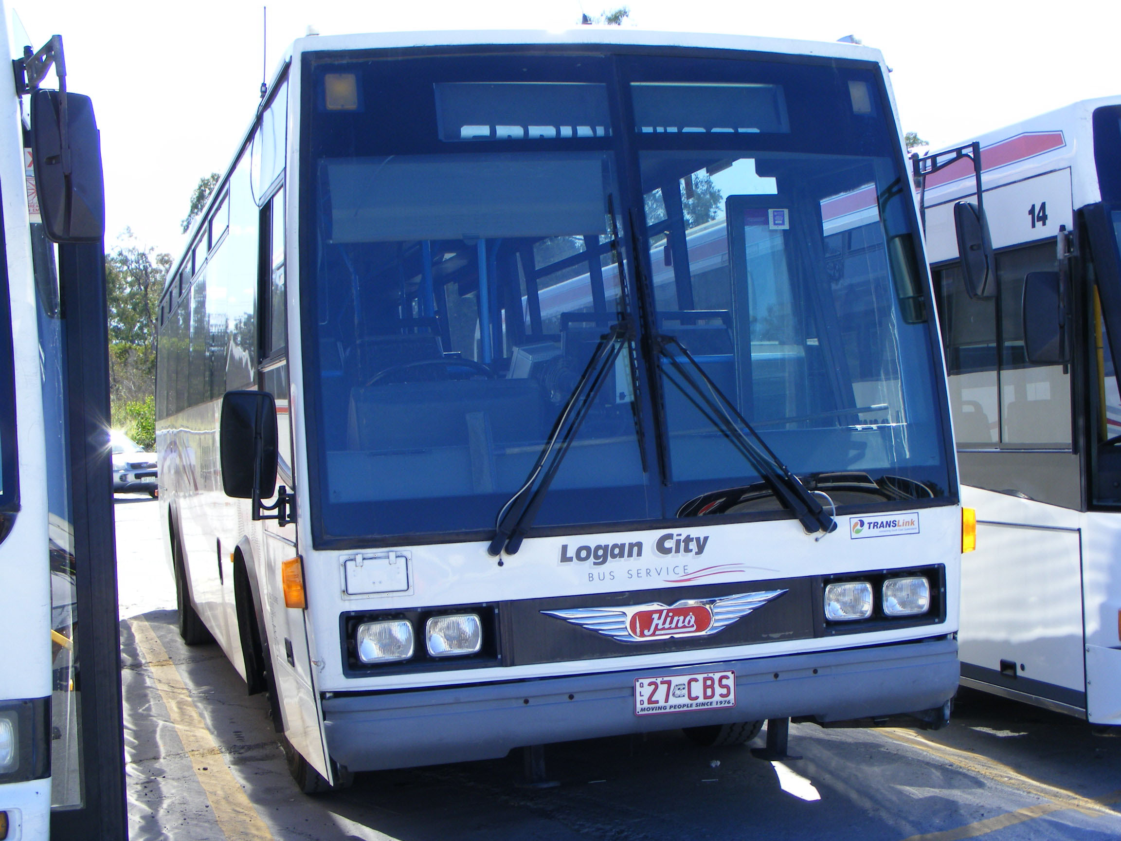 A contrasting pair of Hinos, both with PMCA bodies. On the left Logan City is 29 (29CBS), a 1997 BD186R with 45 seat Cadet body which has since been sold to Queensland operator Glasshouse Country Coaches of Beerwah as 44 (972SGH). The PMCA 160 RG197K on the right, 31 (31CBS), joined Koala as 10, seen earlier. |