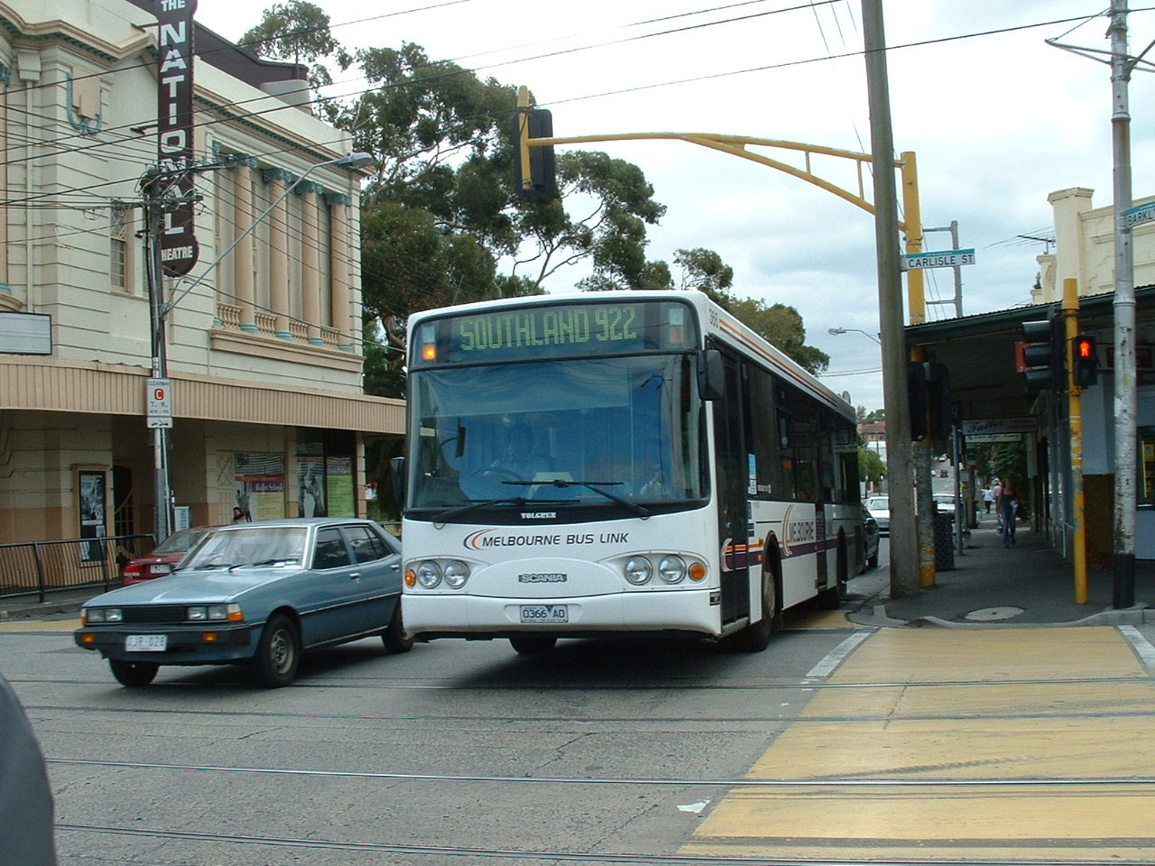 Outside the Southern Cross Railway Station in August 2008 is Scania L94 the first Volgren CR222L bodied bus in Australia, having been built in April 1999. Melbourne Bus Link 352 (0352AO) is still advertising the Indiana Jones movie released three months earlier. It became an all over advert for ABBA World subsequently. It is the first of what became Melbourne Bus Link's standard model, the Scania/Volgren - as used by co-parent, Dysons. |