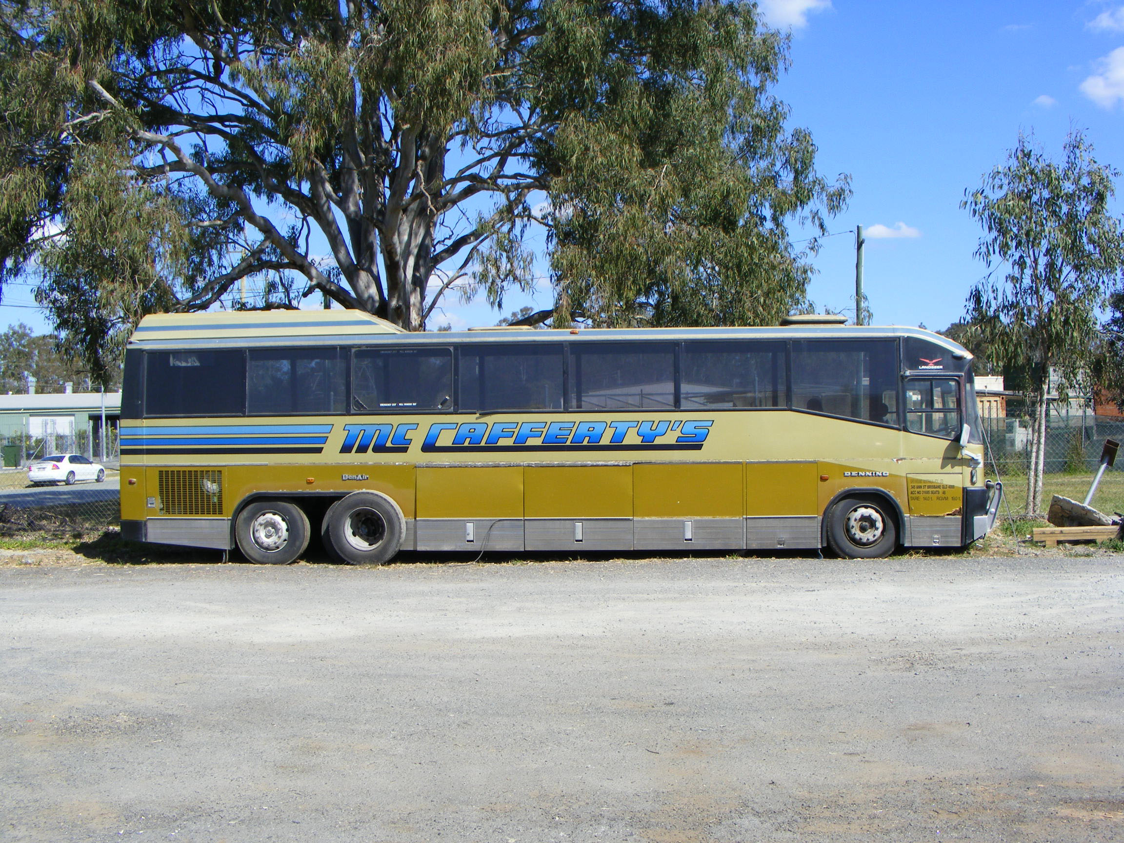 Denning Landseer 331 (331ATR) in Canberra Bus Station in August 2002. Alongside is a MCA Motorcoach and in the background, the Nissan Civilian midicoach seen earlier.