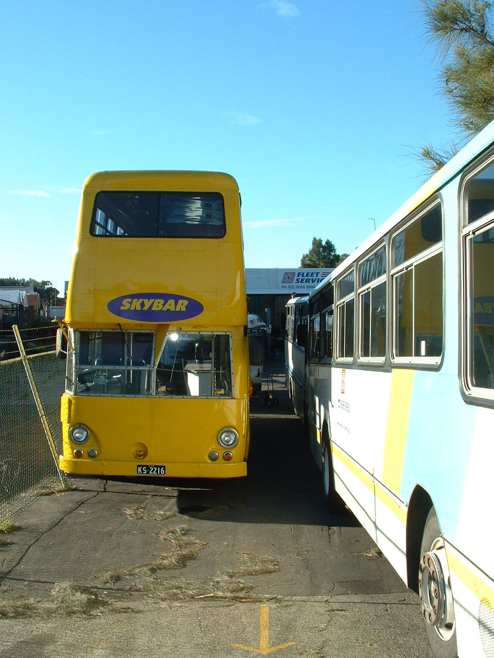 Nestling in the Kingsford Smith Transport (KST) airport depot in 2004 was 51 (KS2216) and originally 1136 (MO1136). KST acquired it from Sydney Kings Basketball Club in an advert livery for the Skybar Tavern, which it still carries. It was sold to the Towradgi Beach Hotel in 2007 and acquired for preservation in 2013. |