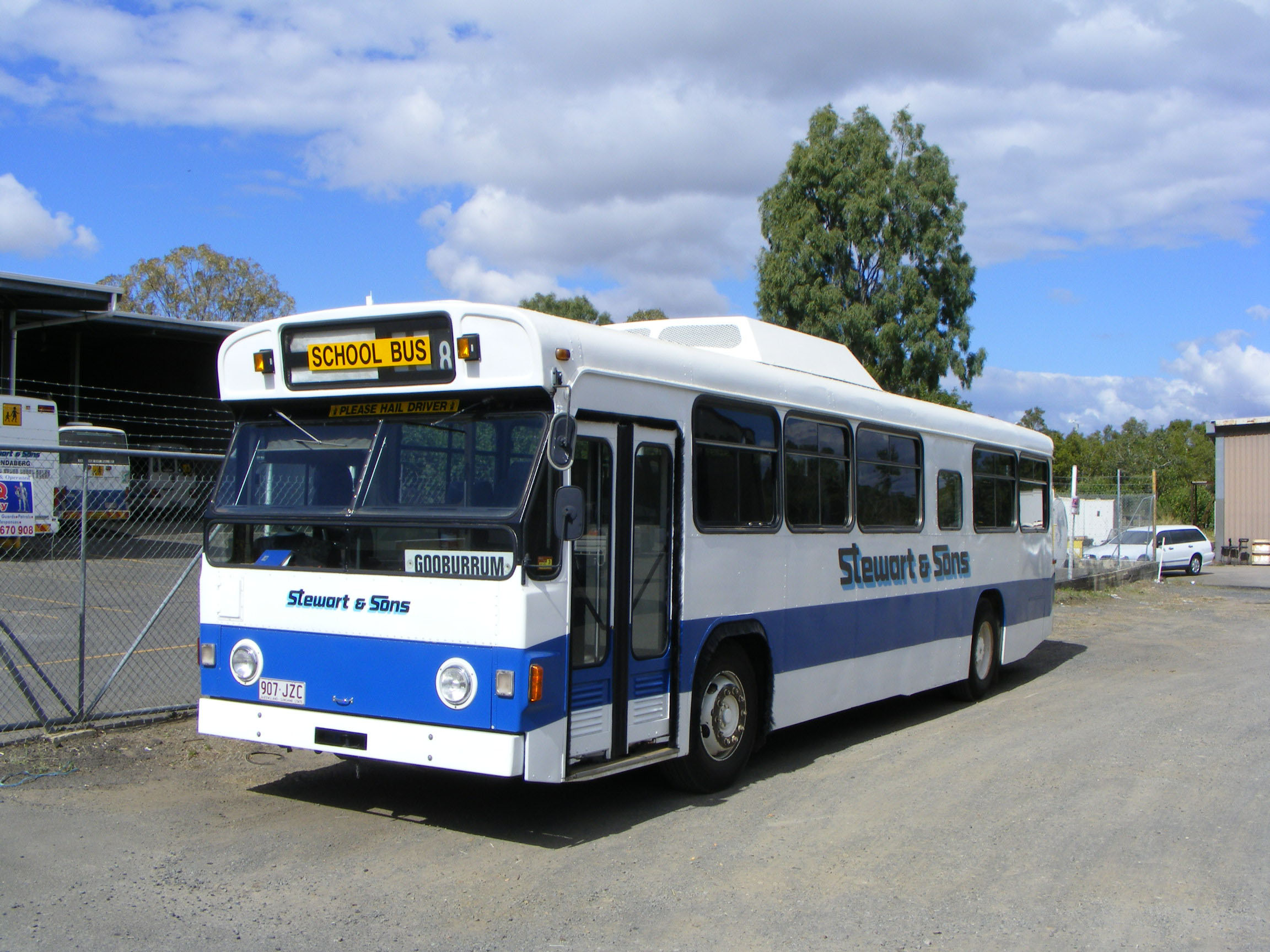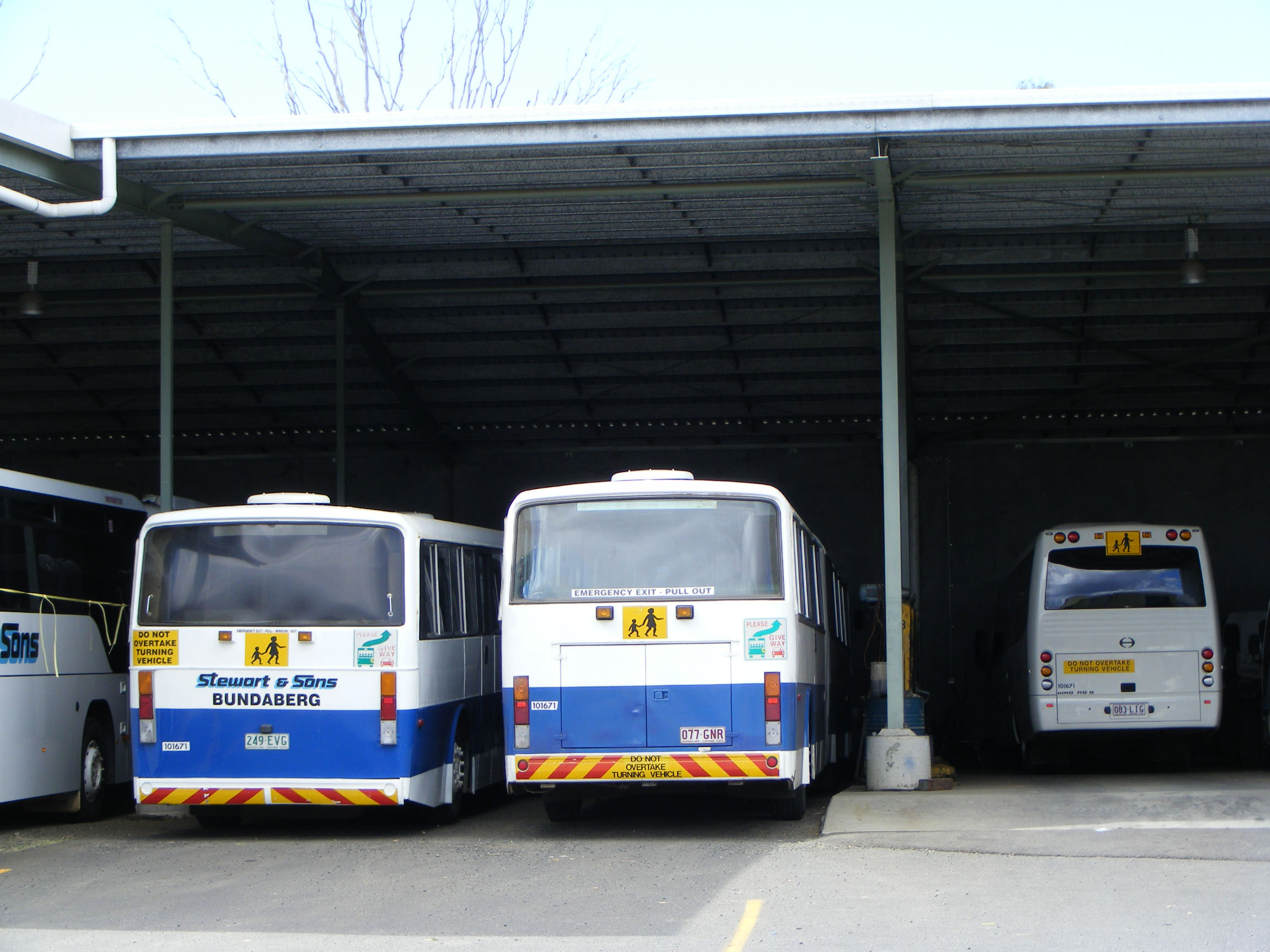Stewart & Sons MAN SL200 6 (907JZC) is seen at their Bundaberg depot in August 2009. The former Brisbane Council 961 (961HKH) has had its Denning body modified with the removal of the centre doors for its new job as a school bus. |