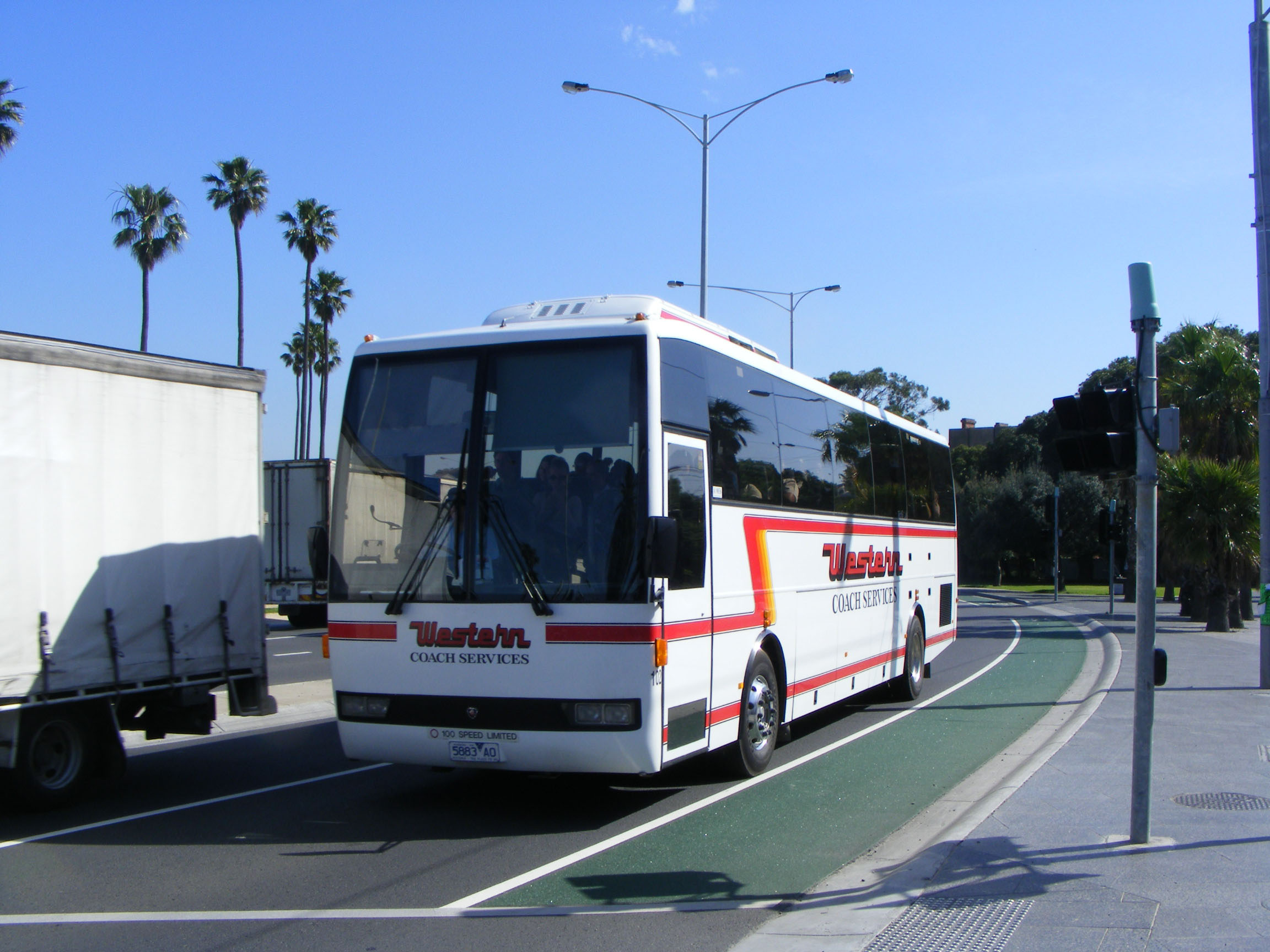 Following 102, Scania K93CR 99 (5885AOAO) is pursued by a Melbourne Bus Link Scania/Volgren running light. Both Western coaches have Autobus coachwork, date from 1998 and are part of a small batch acquired secondhand from Oz Experince in Queensland, a company bought by Greyhound in late 2011. |