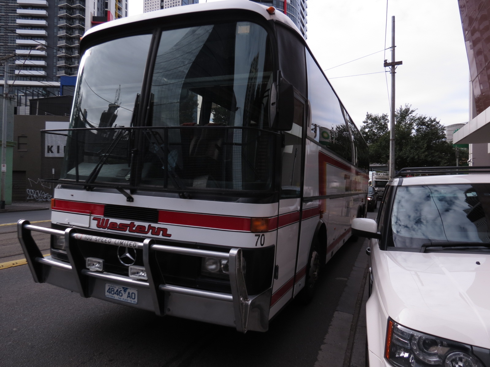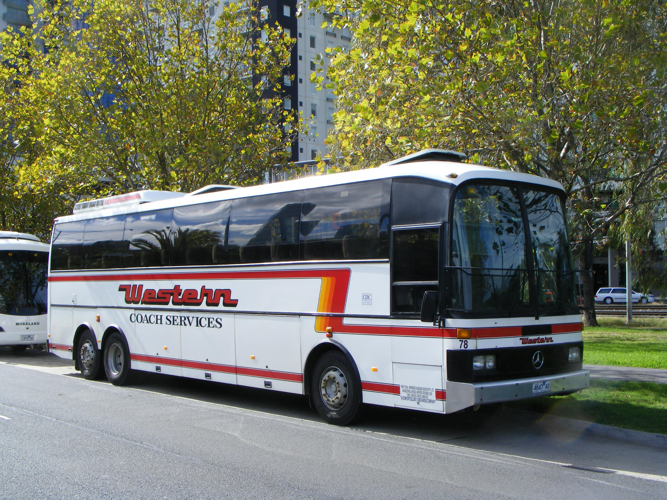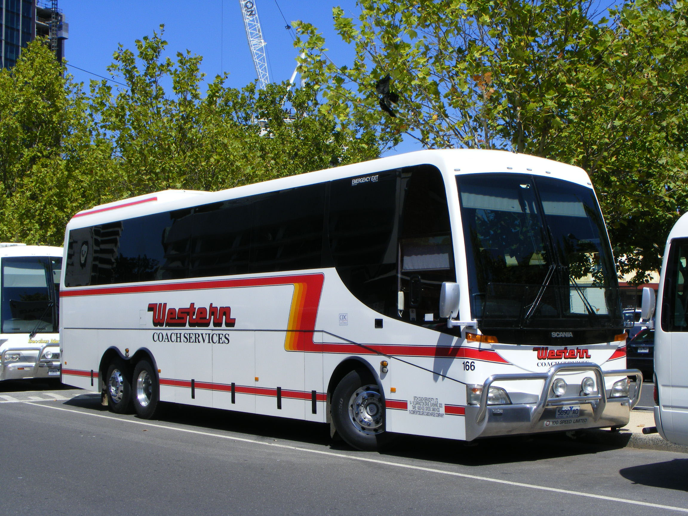 In February 2012 Coach Concepts bodied Scania K124EB 166 (5890AO) is seen in Melbourne's Arts Precinct. The coach was bought new by the Kefford Group in 2005 in Western Stage Lines livery and operated for Davis' as such from Ballarat depot. |