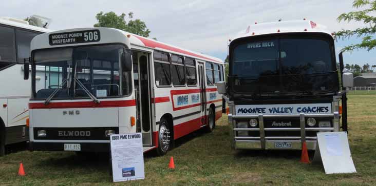 Fresh from display at Moonee Valley Coaches new museum the day before were their PMC bodied Elwood, 53 (DIT852) and former Deluxe Austral Tourmaster 57 (2257AO).