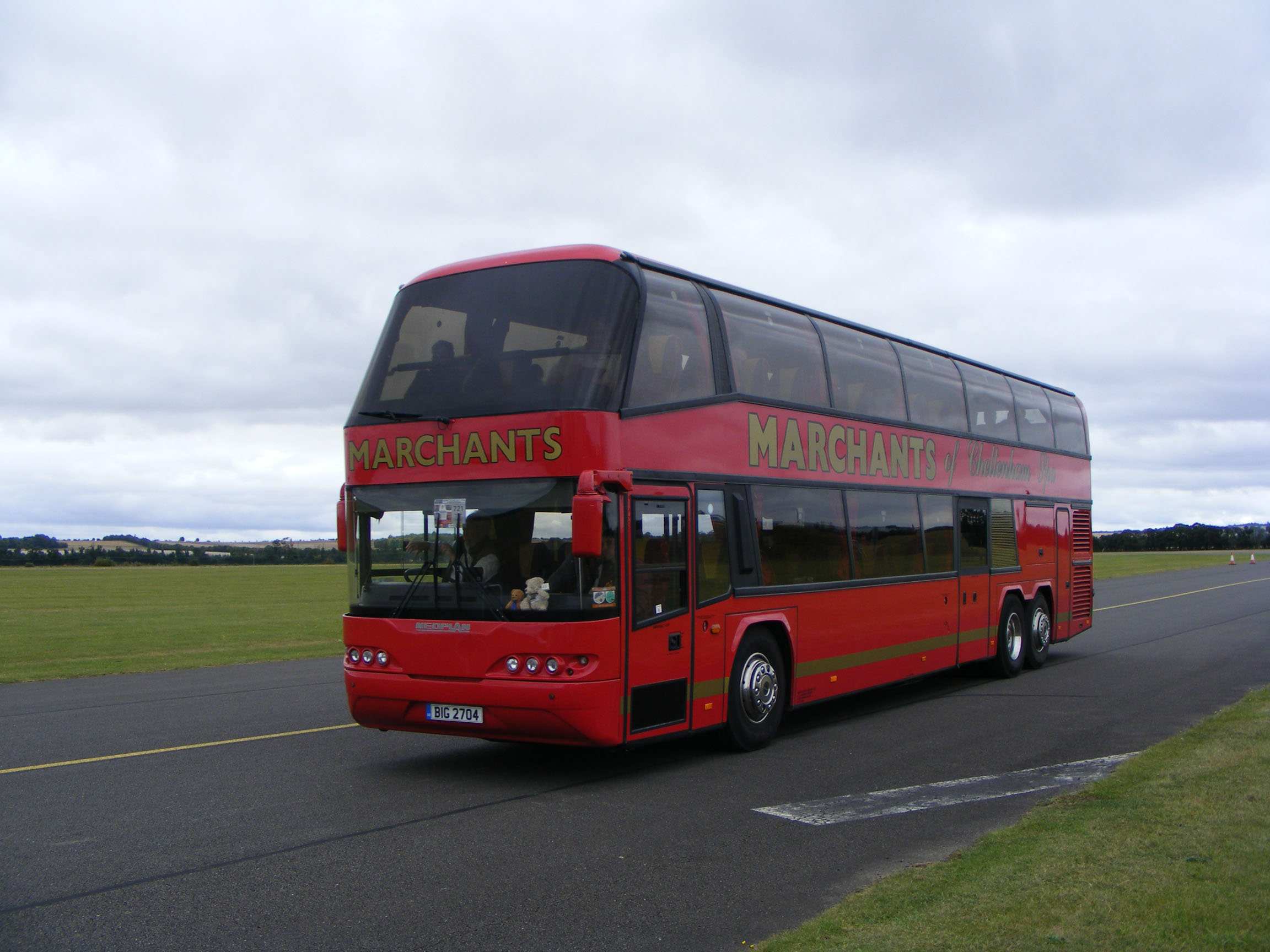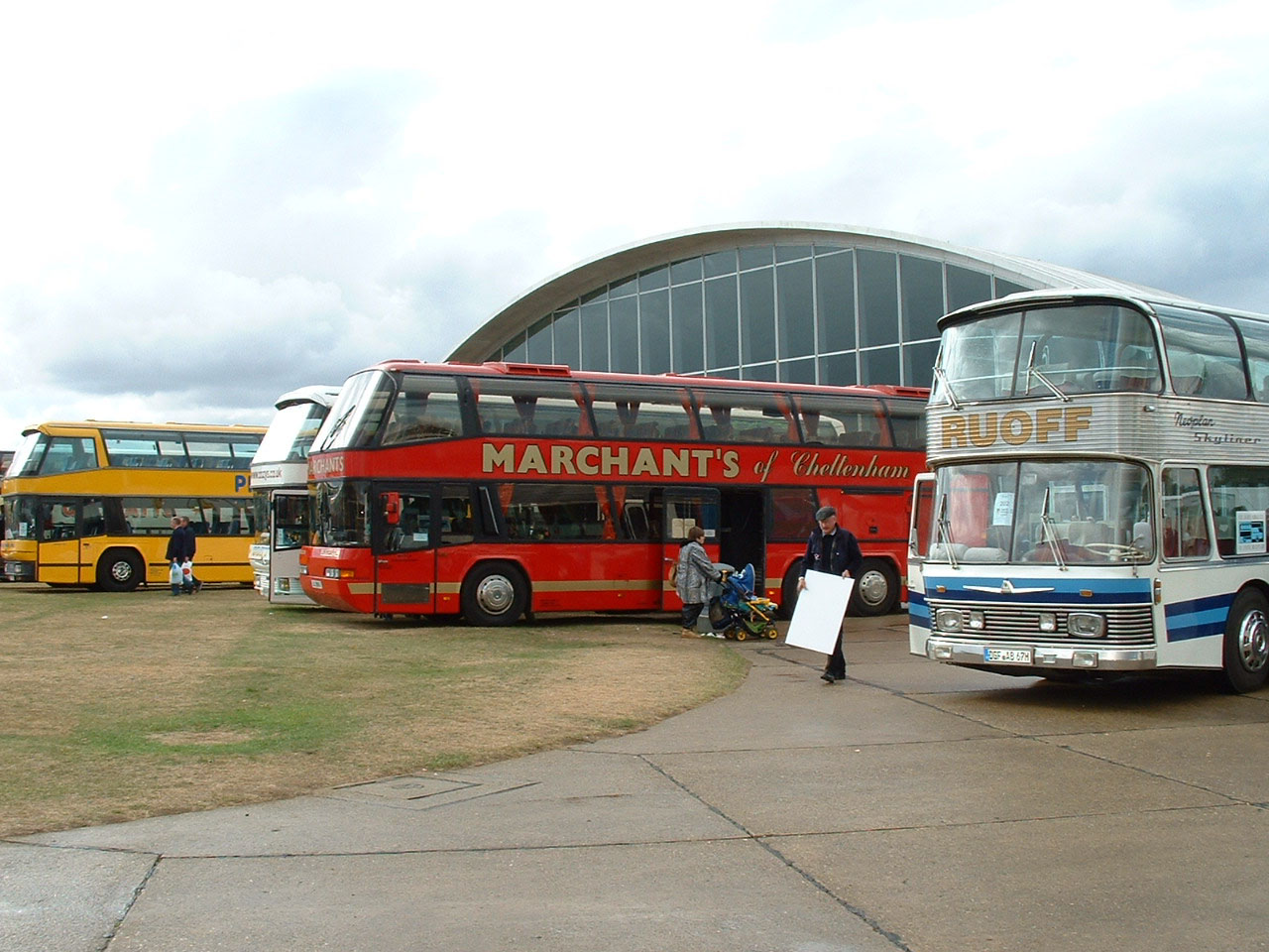 The hghlight of SHOWBUS international 2003 was this German Neoplan Skyliner seen arriving at Duxford on Saturday morning in glorious sunshine. This gave us all an opportunity to meet the German party and to collect flyers for their event at Styer in April 2004, which were distributed to entrants as they arrived on the Sunday. Several operators took the opportunity to join a display of Neoplan vehicles including Marchants' LIL9843. Their Skyliner was believed to have been new to Western National for National Express work as 1400 (E213BOD). |