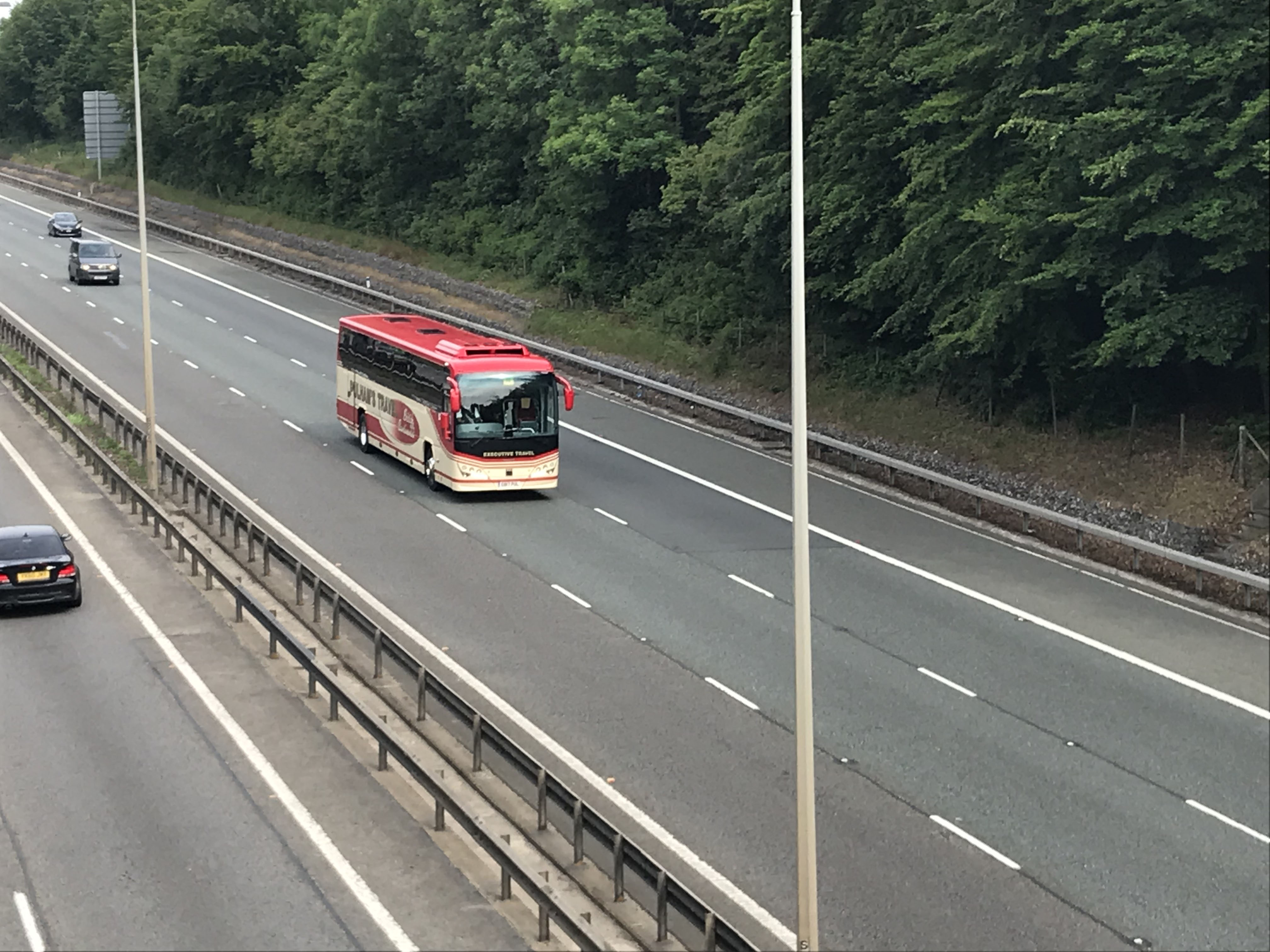 Plaxton Leopard bodied Volvo B8R GB17PUL is seen on the M40 near Wycombe in June 2019.