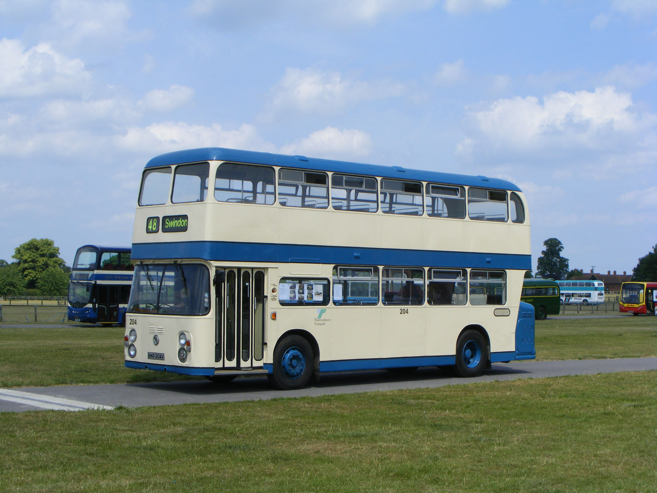 SPD Dart 215 (WX04CZL) was painted in this gold colour scheme to celebrate 100 years of service to the town of Swindon. The bus is seen at North Weald bus rally that year (2004) and also put in an appearance at SHOWBUS in September, and doubtless took part in numerous other events including Thamesdown's own celebrations at Wroughton. |