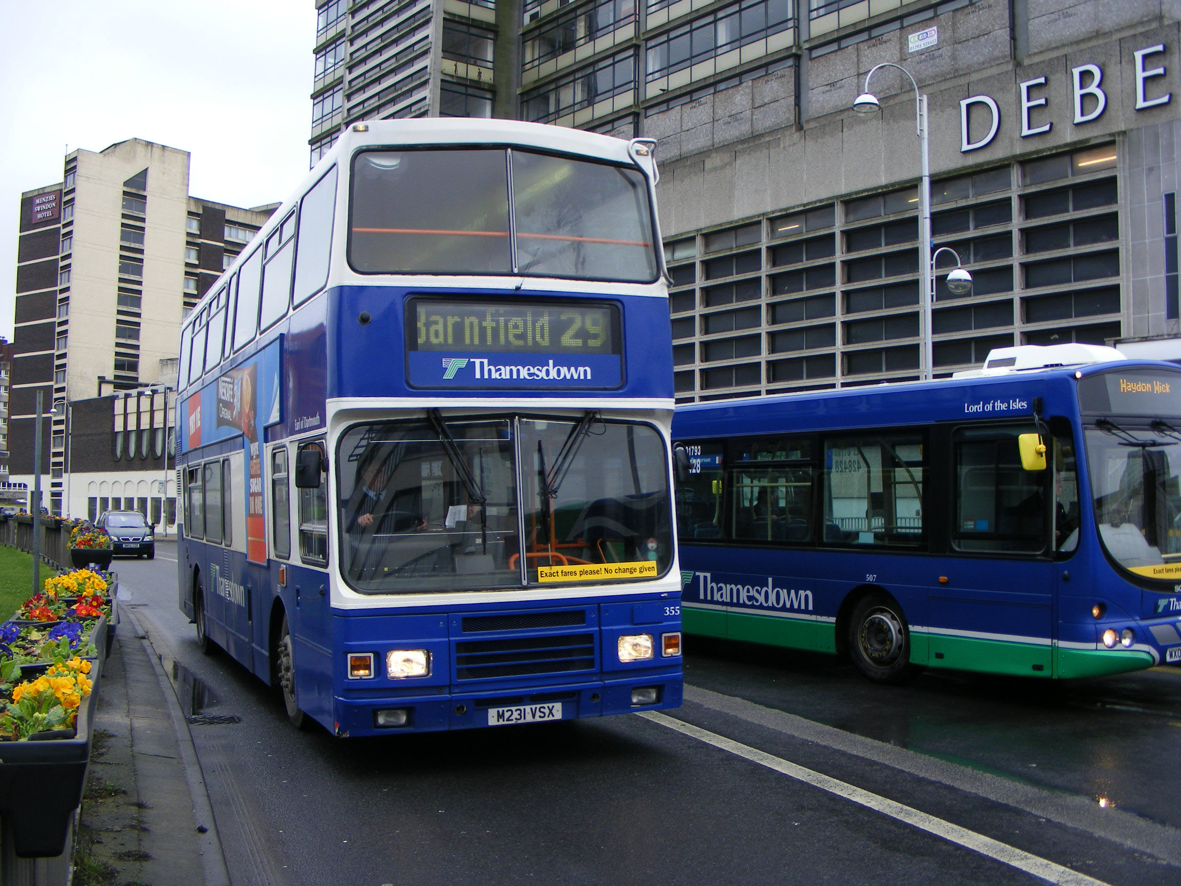 A large school bus fleet was needed and Thamesdown turned to secondhand doubleeckers to supplement its ageing decker purchases. Following on from a large batch of ex Bournemouth Fleetlines, which conveniently arrived in yellow, a jarge bathc of ex Lothian Volvo Olympians became the school fleet. |