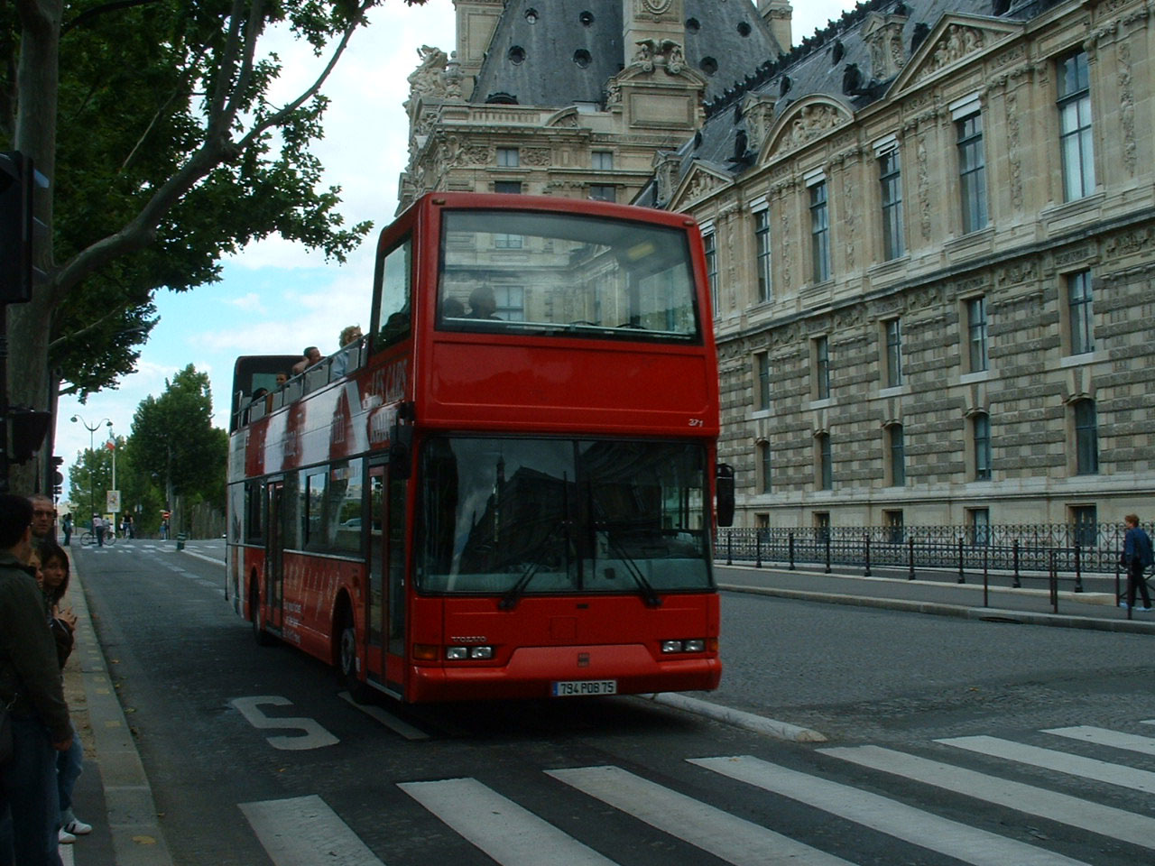 Approaching the Louvre along the banks of the Seine is Volvo B7L 371 (794PDB75).