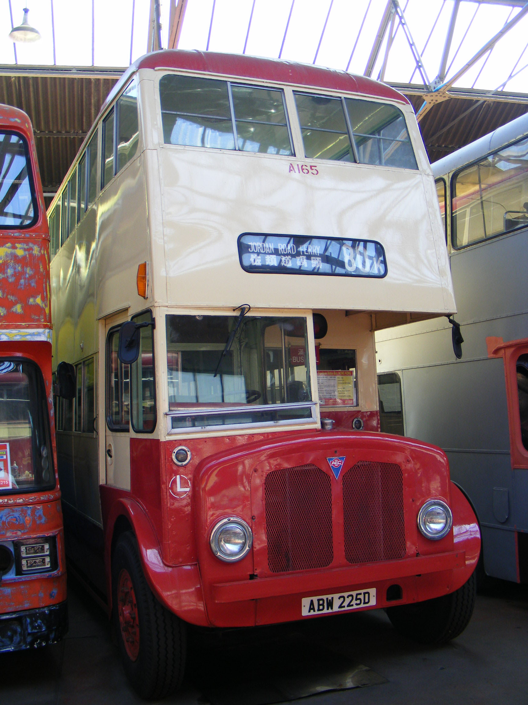 Someone in South Wales has a soft spot for Hong Kong buses and repatriated Metsec bodied AEC Regent V A165 (AD7156). It was one of 210 extended wheelbase models, 34 feet in length and seating 78. As A165 was built in 1966 it has been given a D-suffix UK registration: ABW225D. It is seen in its new home at Barry Island Bus Museum in June 2013.