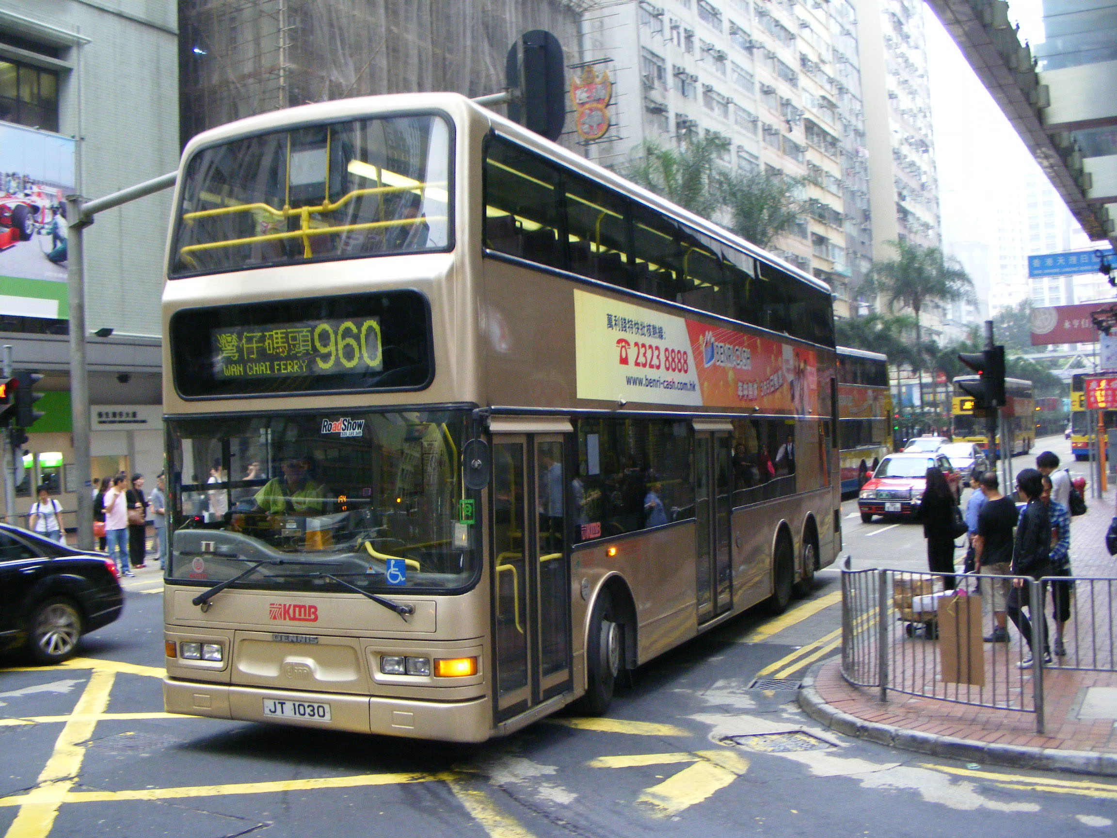 Threading its way through traffic on the Island in April 2012 was Duple Metsec bodied Dennis Trident ATR271 (JT1030) on a 960 run to Wang Chai Ferry.
