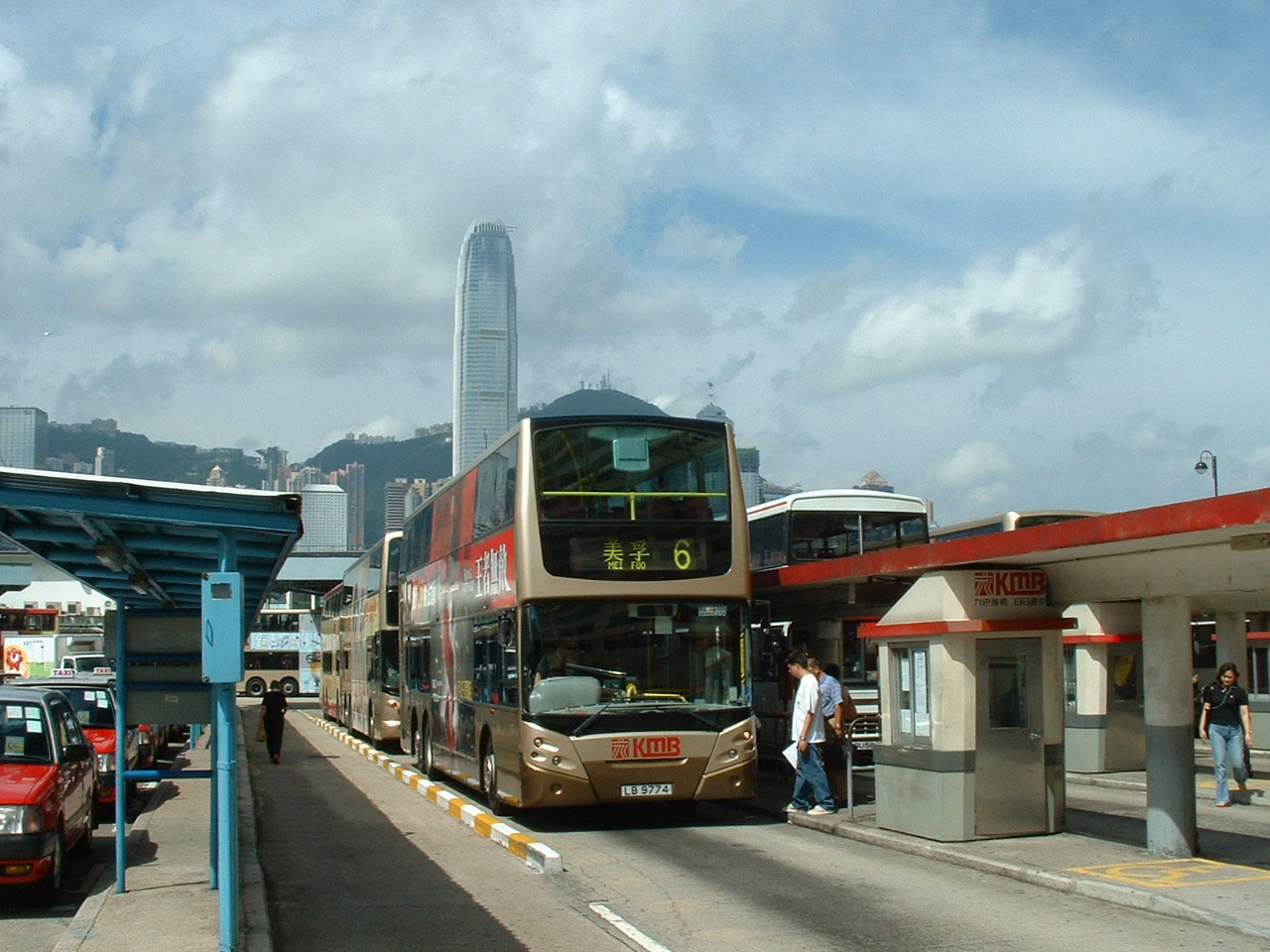The dramatic backdrop of the Peak on Hong Kong Island always sets off a picture at the Kowloon side Star Ferry terminal. TransBus Enviro500 AVE57 (LB9774) awaits departure on route 6