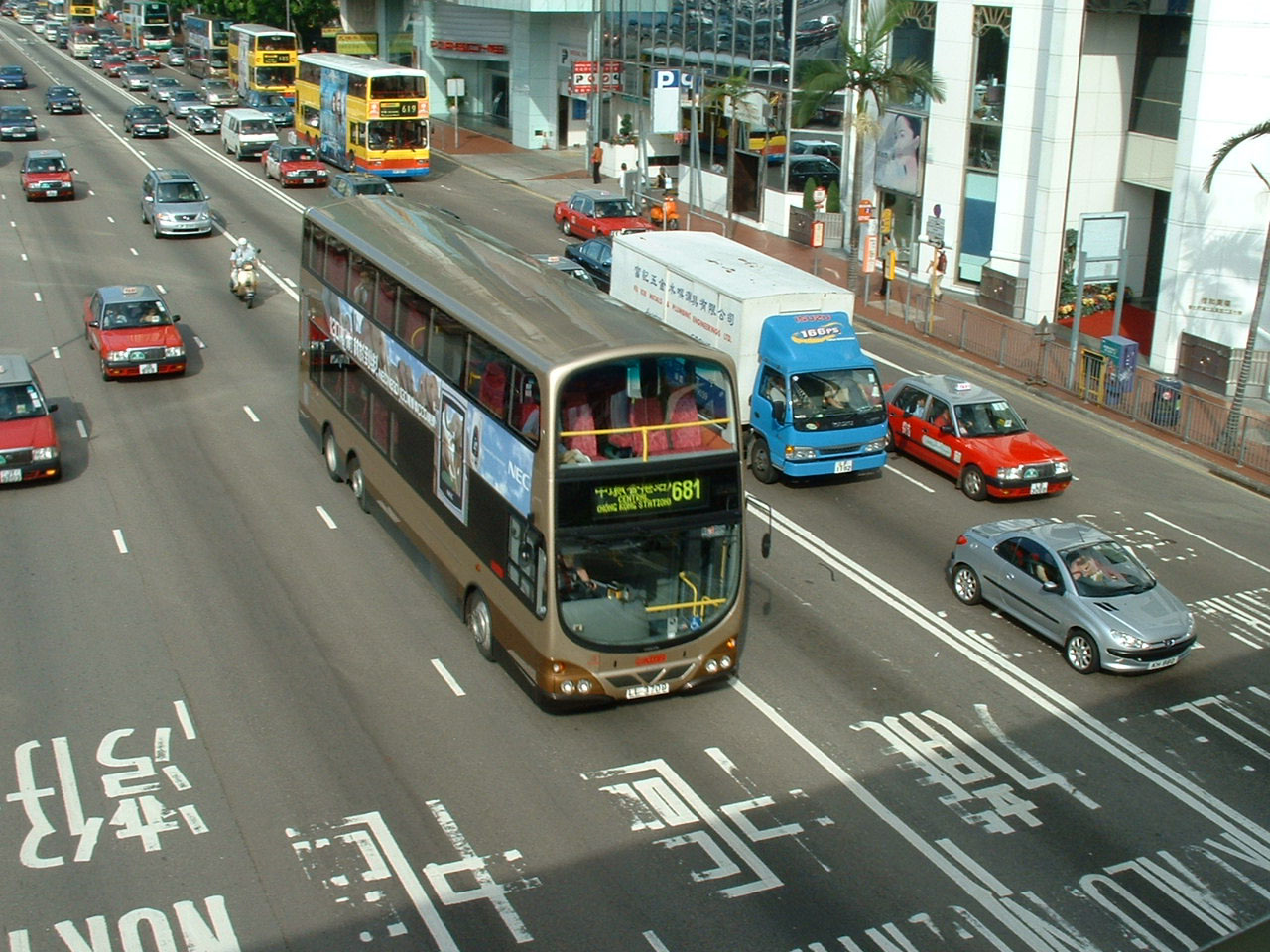 Seen from the top deck of another Wrightbus is AVW20 (LL3185) heading along the motorway into the New Territories. The buses were used on the long distance express routes linking to Hong Kong Island.