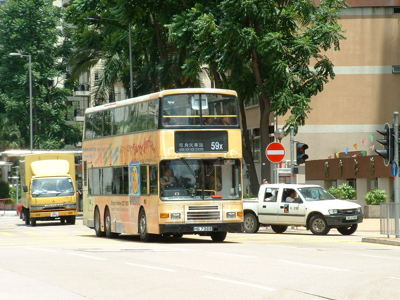 An unidentified Alexander Royale bodied Volvo Olympian is about to pasa a Citybus Duple Metsec bodied Dennis Trident in July 2004. The Trident was one of the few vehicles to be painted in a version of Stagecoach's new "swoops" livery prior to the company being sold by Stagecoach.