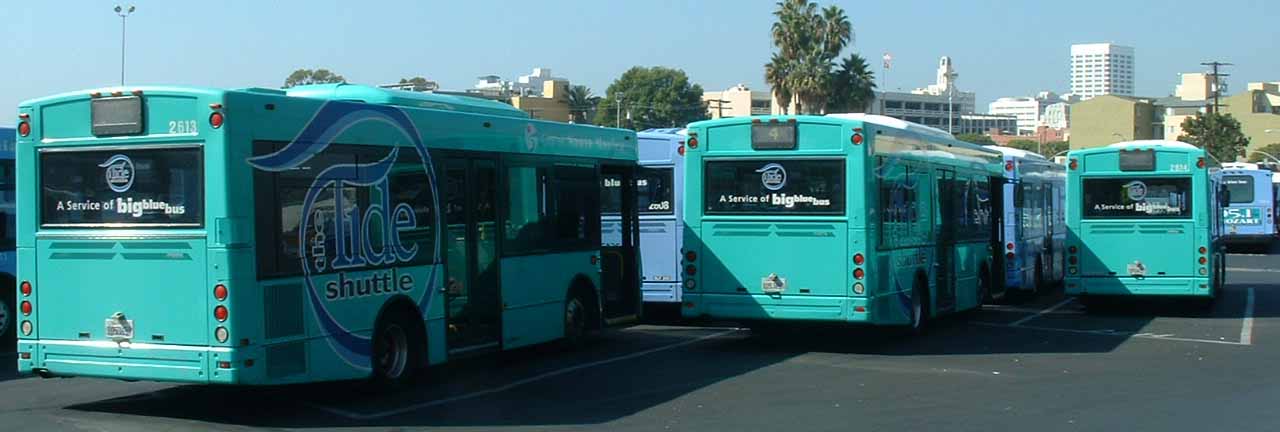 Back at the depot in 2005 it can be seen that at least three of the Thomas SLF230 had received Tide marks. Identifiable are 2613 on the left and 2614 on the right, but the fleet number was missed off the back of the one in the middle!