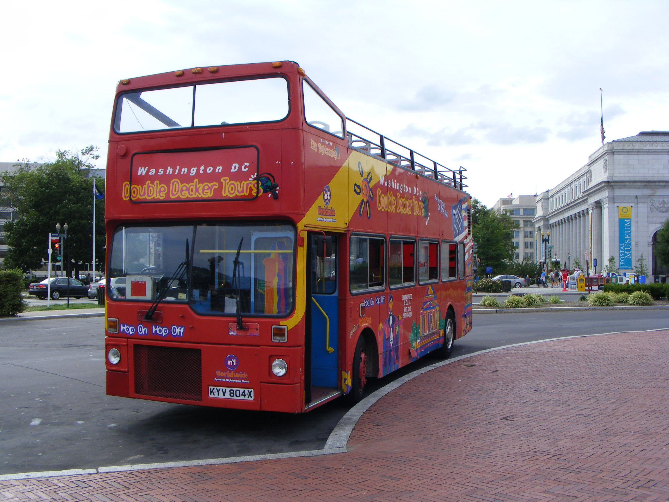 Former London M219 (BYX219V), now numbered 321, is waiting outside Union Station for its next tour. The bus arrived in Washington in 2009 having spent 8 years on Stratford on Avon tours.