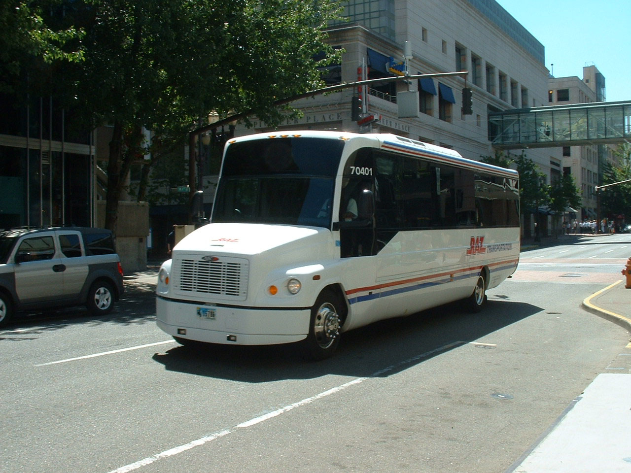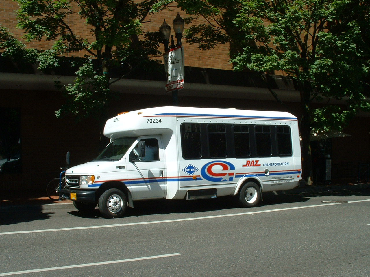 RAZ Transportation is the Coach USA operator in Portland, Oregon. This Ford E450 cutaway, 70234, is seen in the city in August 2007.