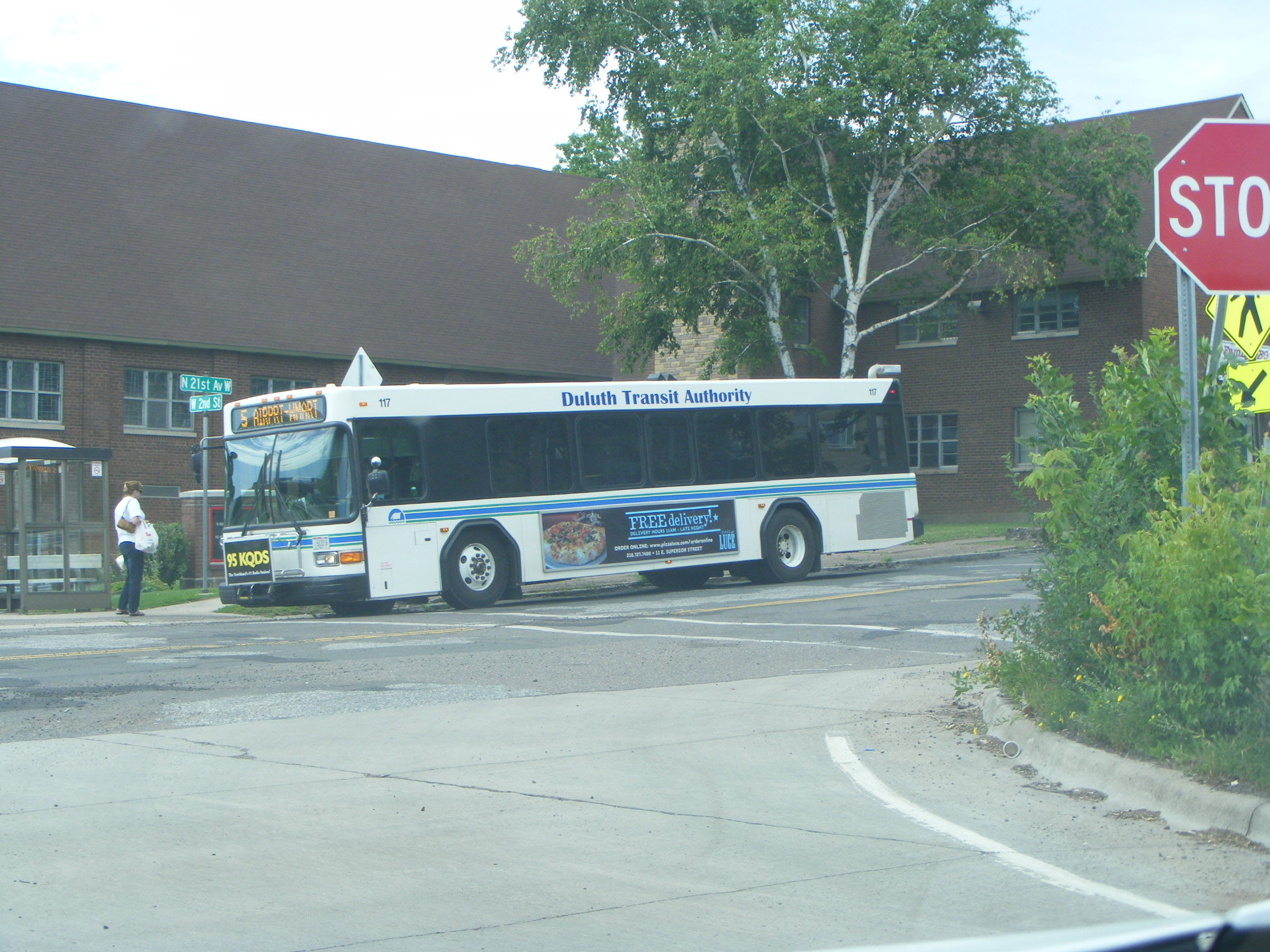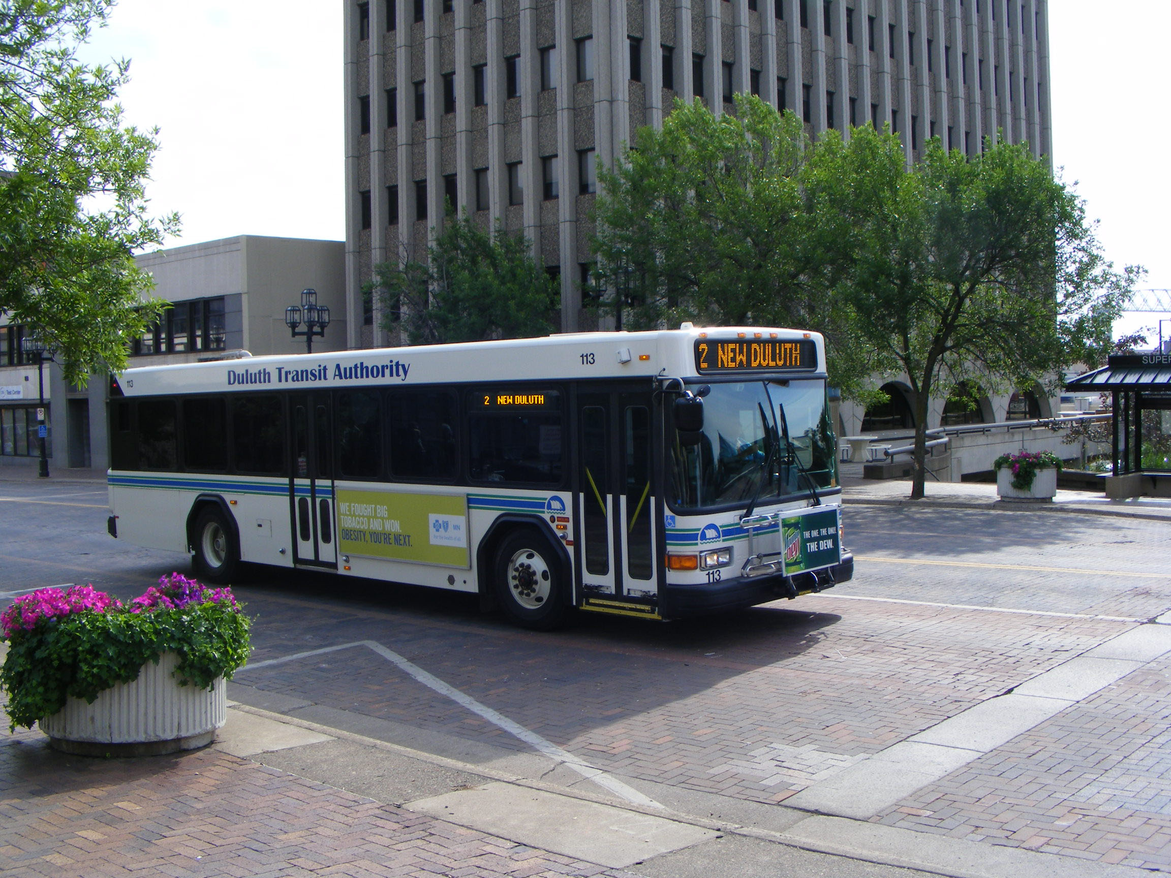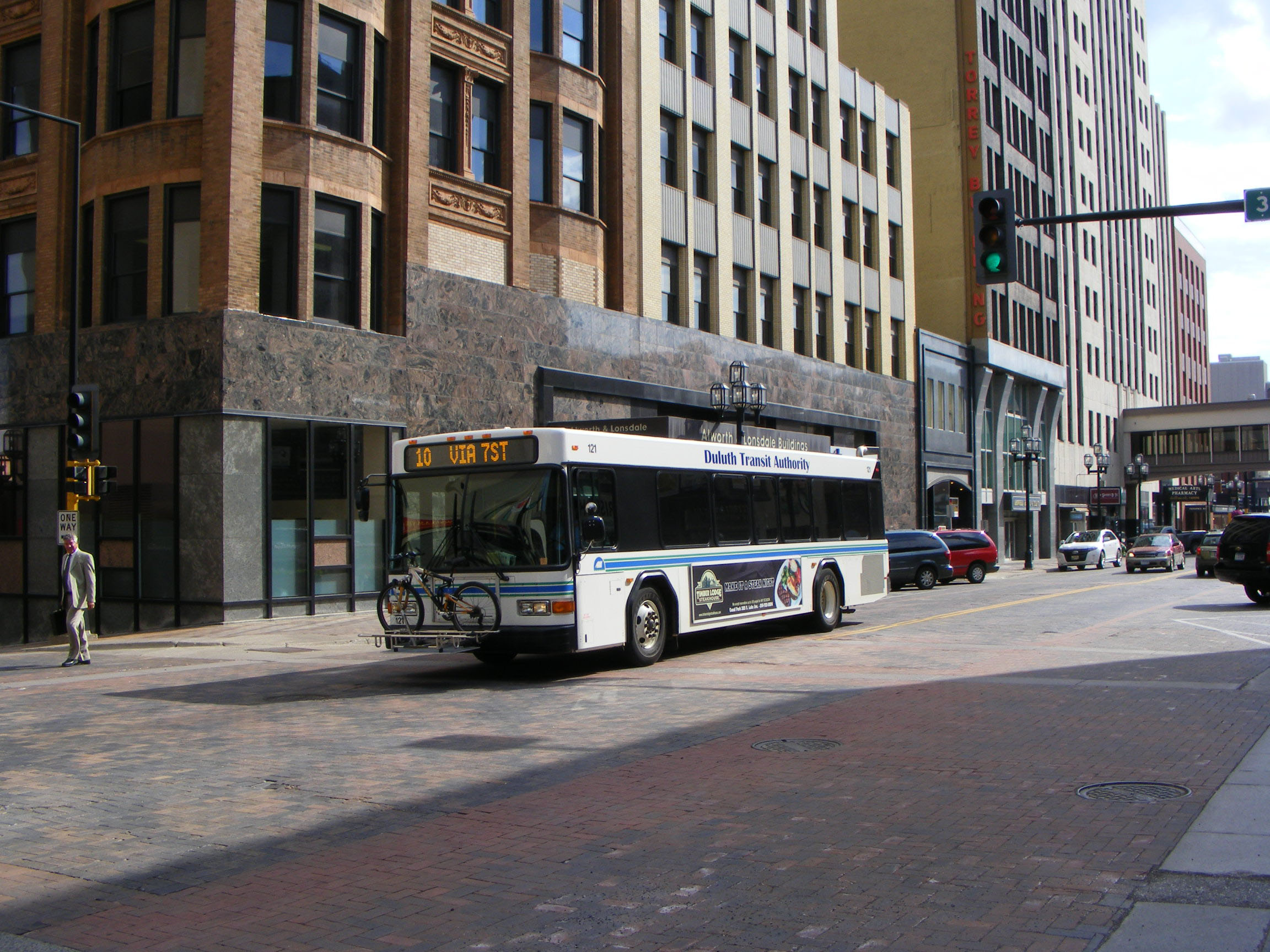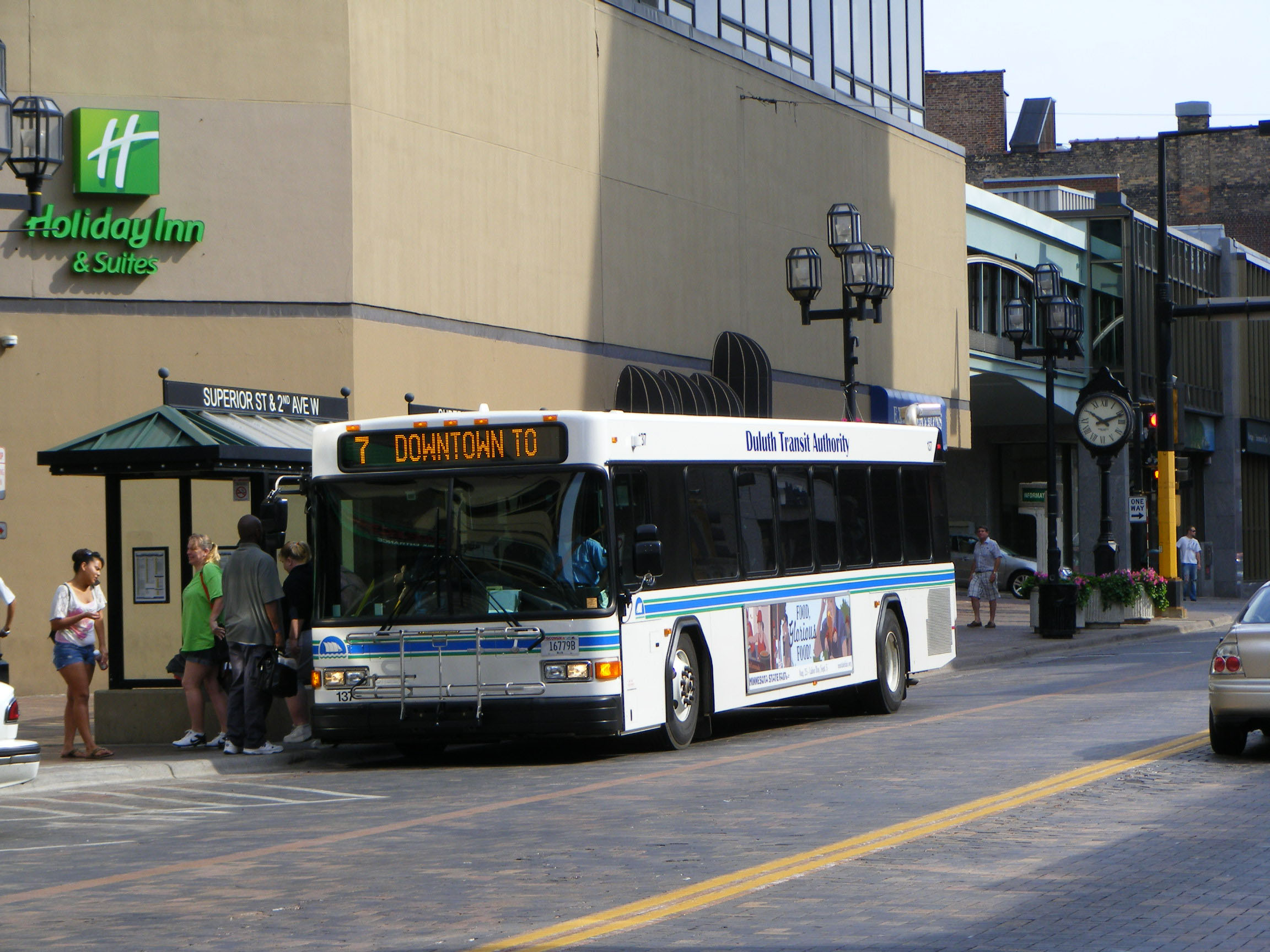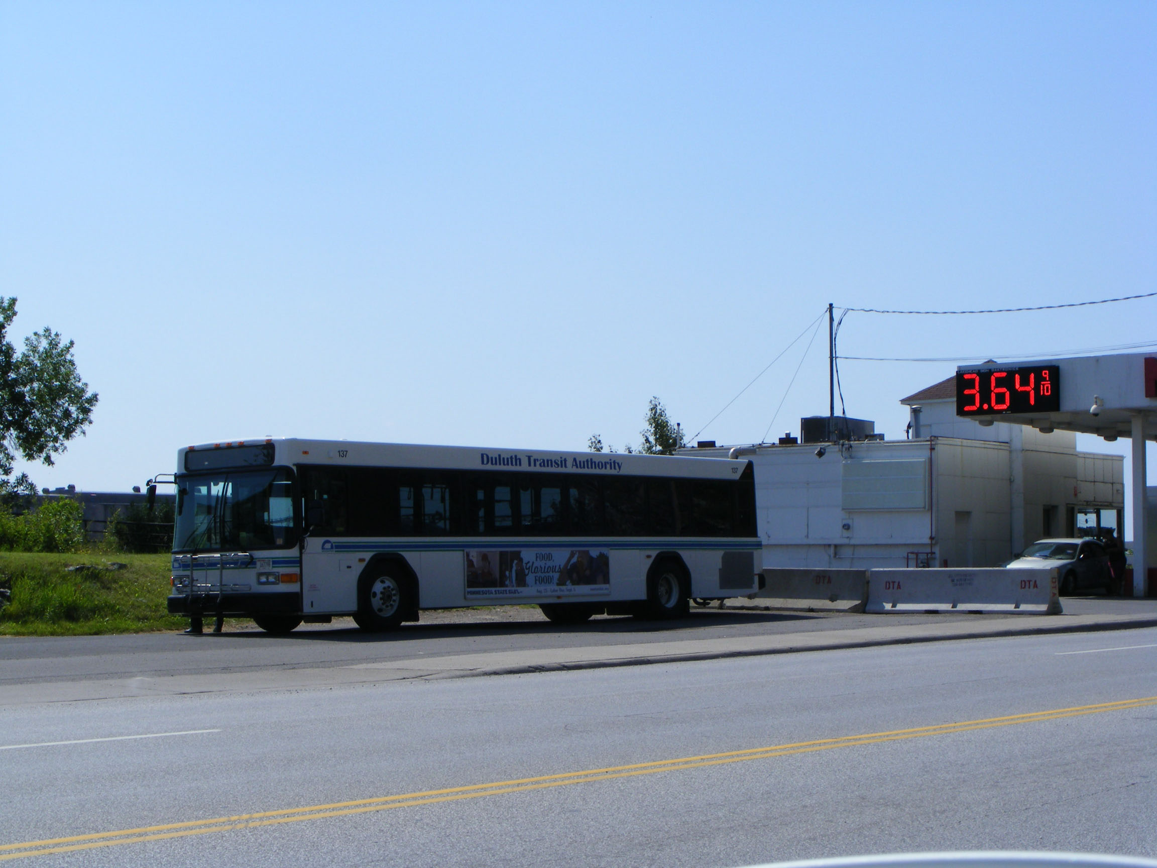 Sister 2010 delivery, 137, one of another batch of ten, is on the 2 to New Duluth from near the Downtown Transit Center. Prior to Advantages, DTA had some Gillig Phantoms, 35 in total, delivered in 1995 and 1997. It favoured GMC Fishbowls prior to that but did receive ten Flexibles in 1989, and ten TMC RTS in 1991.