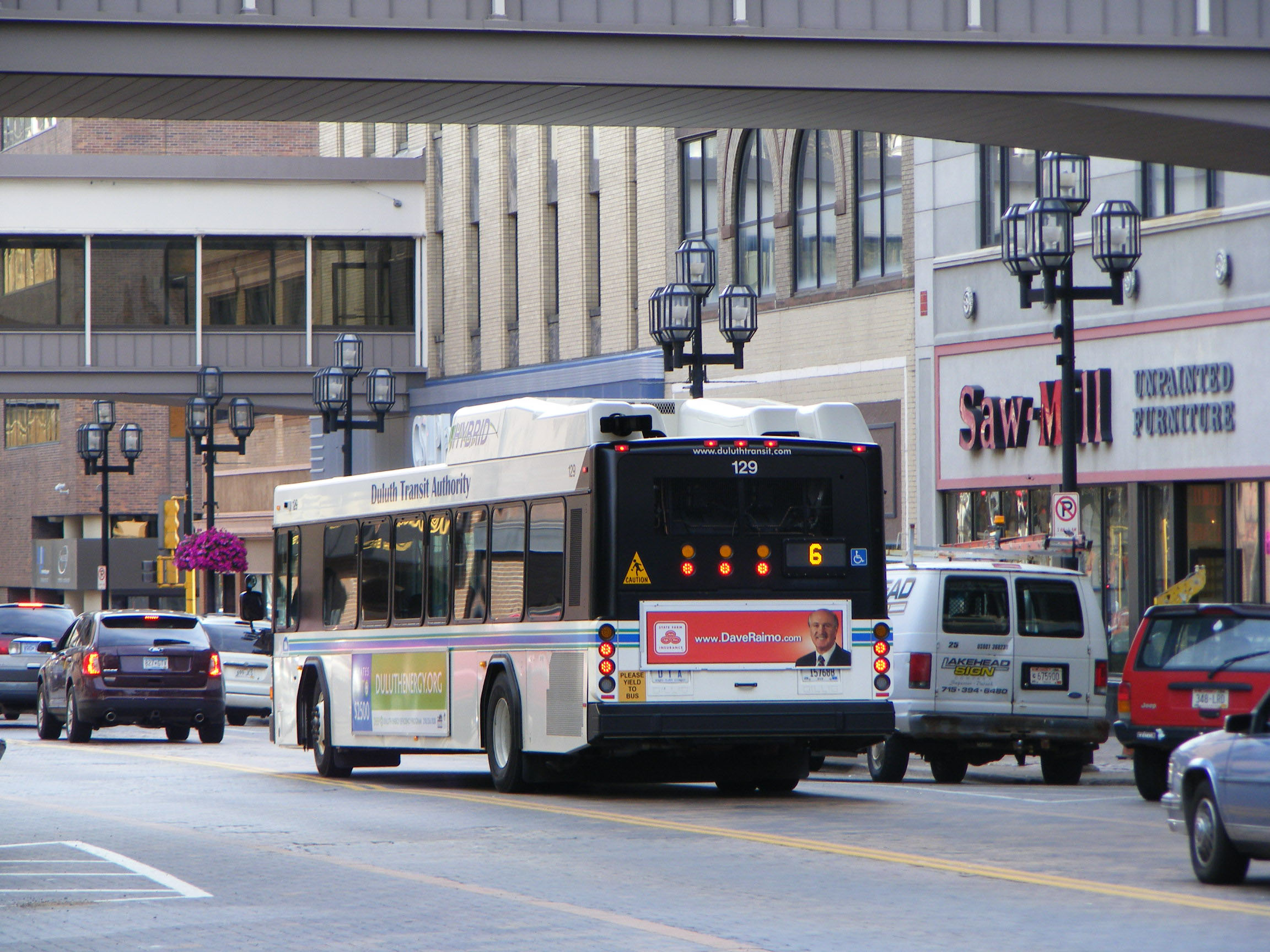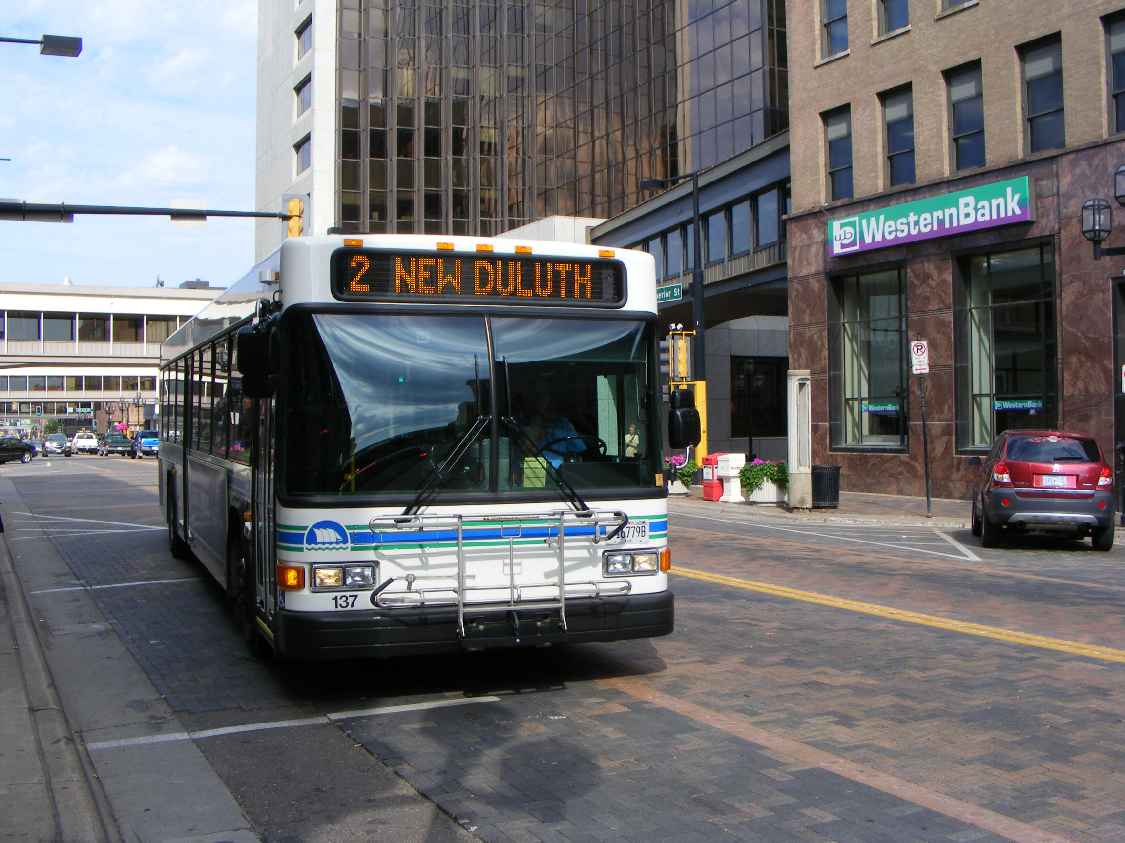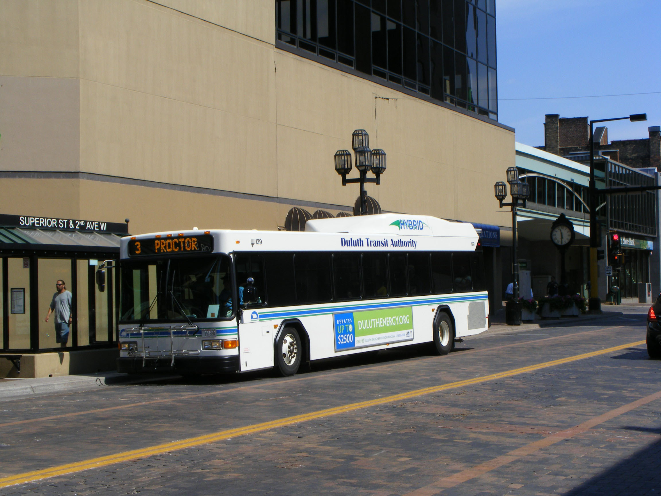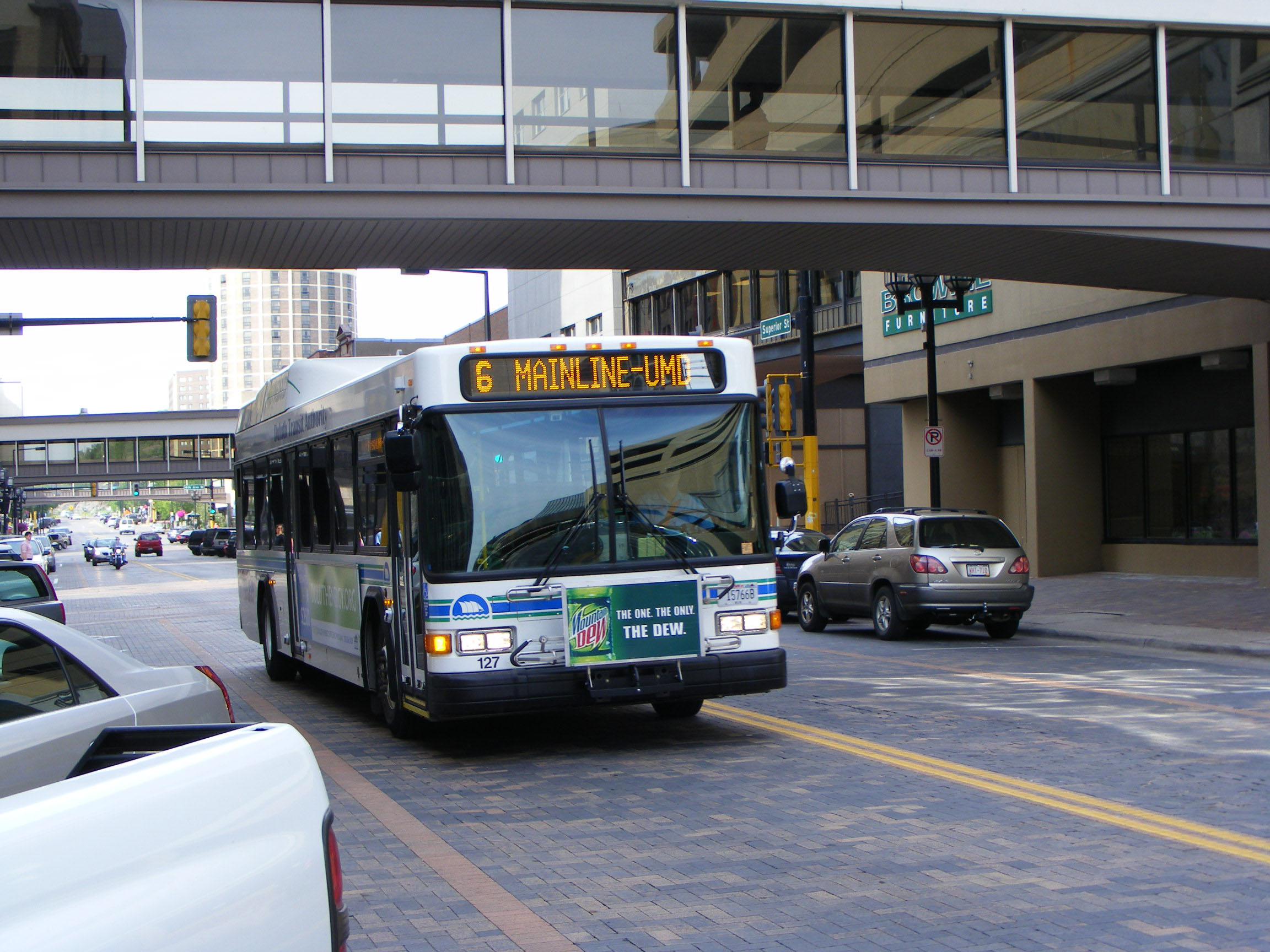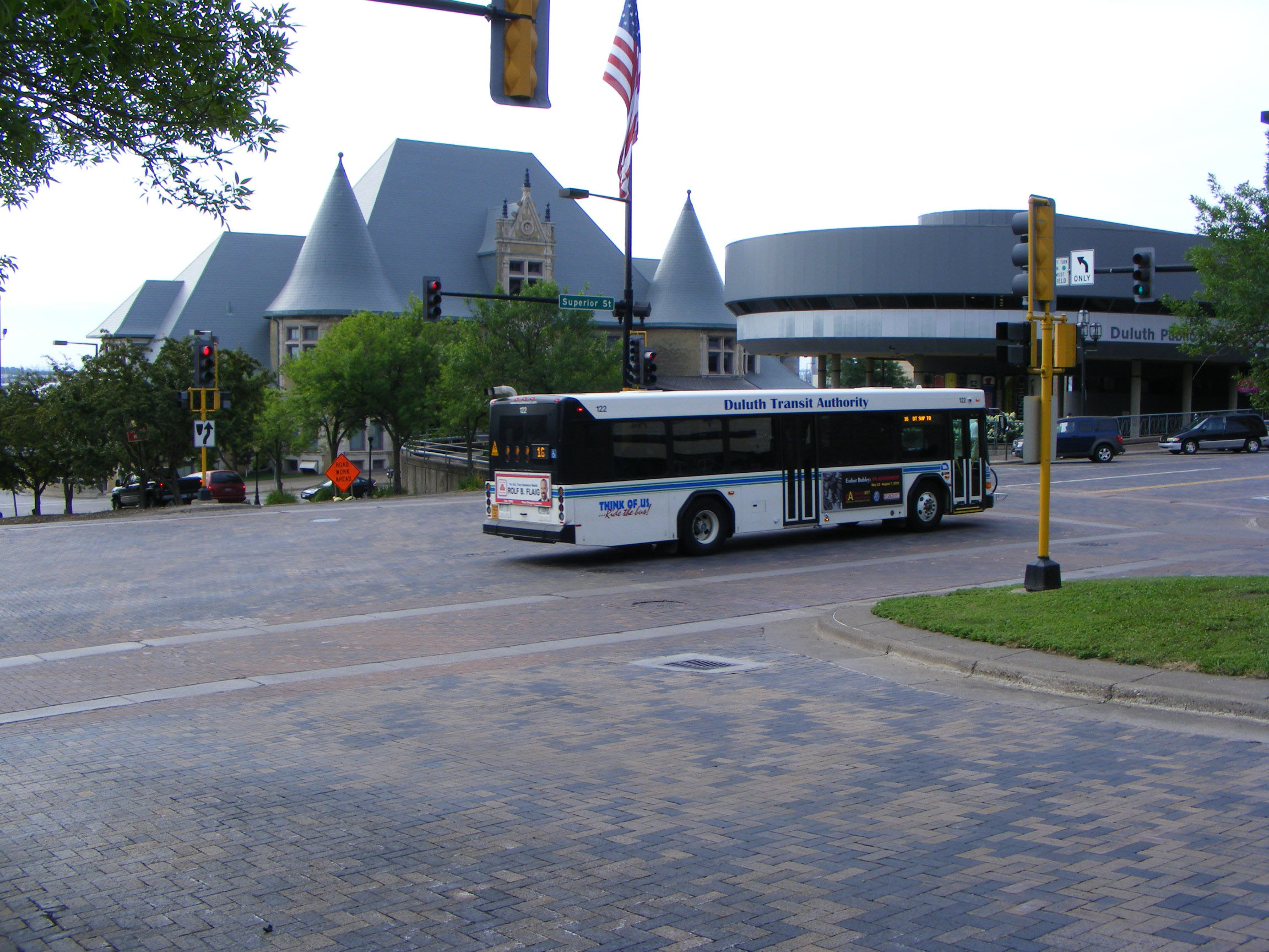 Sister 2010 delivery, 137, one of another batch of ten, is on the 2 to New Duluth from near the Downtown Transit Center. Prior to Advantages, DTA had some Gillig Phantoms, 35 in total, delivered in 1995 and 1997. It favoured GMC Fishbowls prior to that but did receive ten Flexibles in 1989, and ten TMC RTS in 1991.
