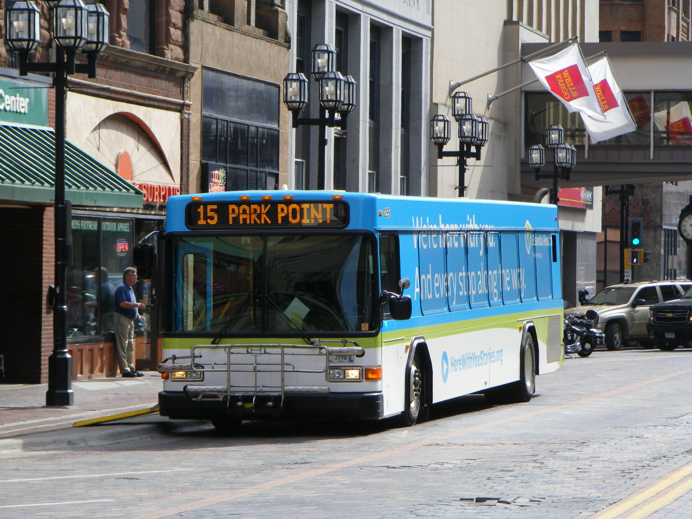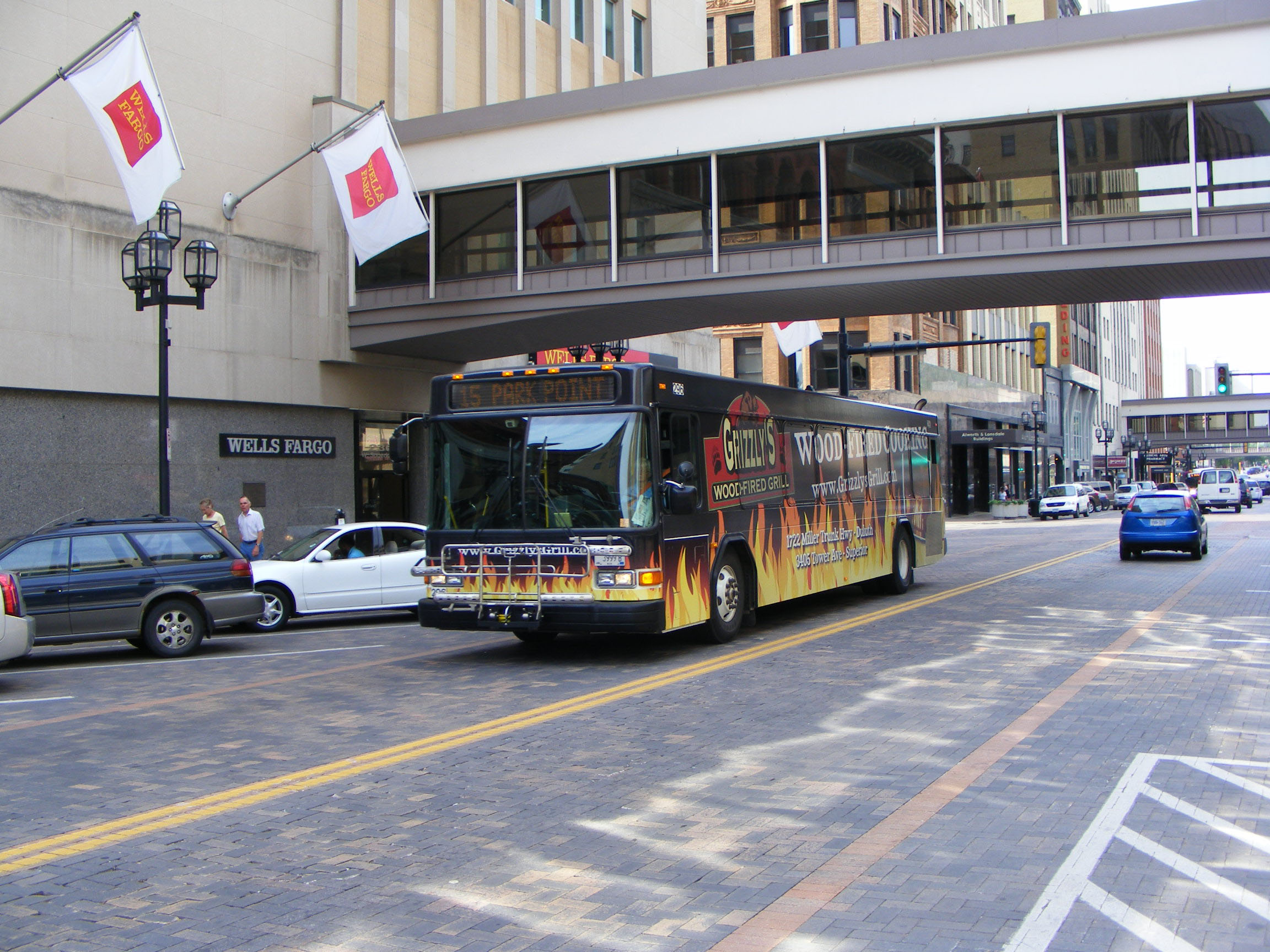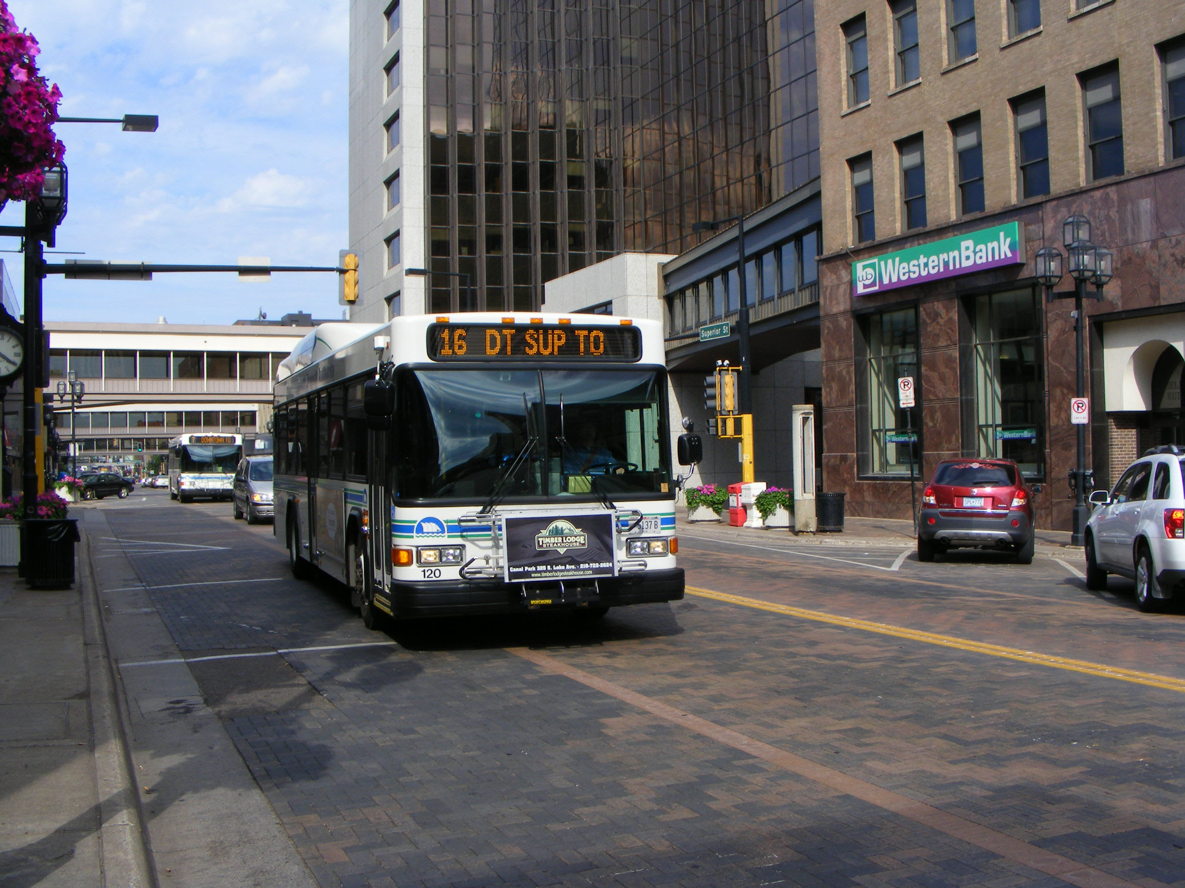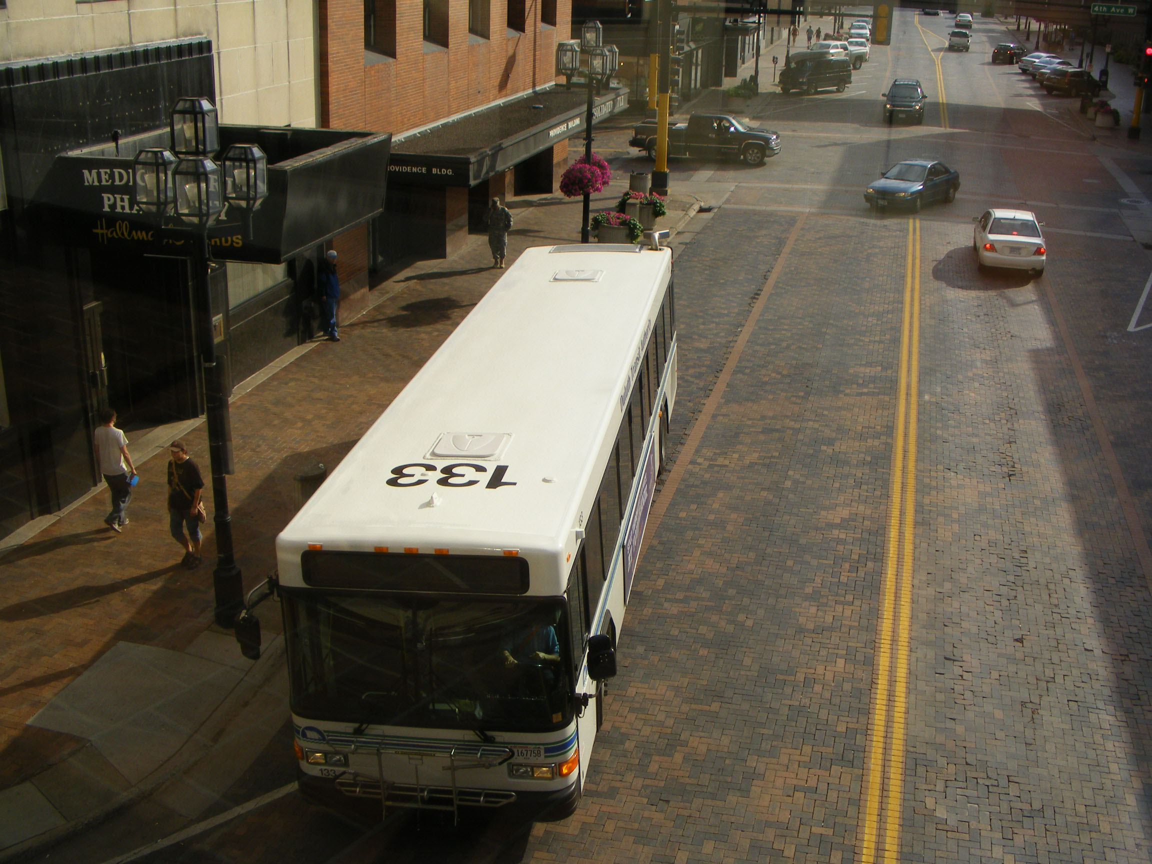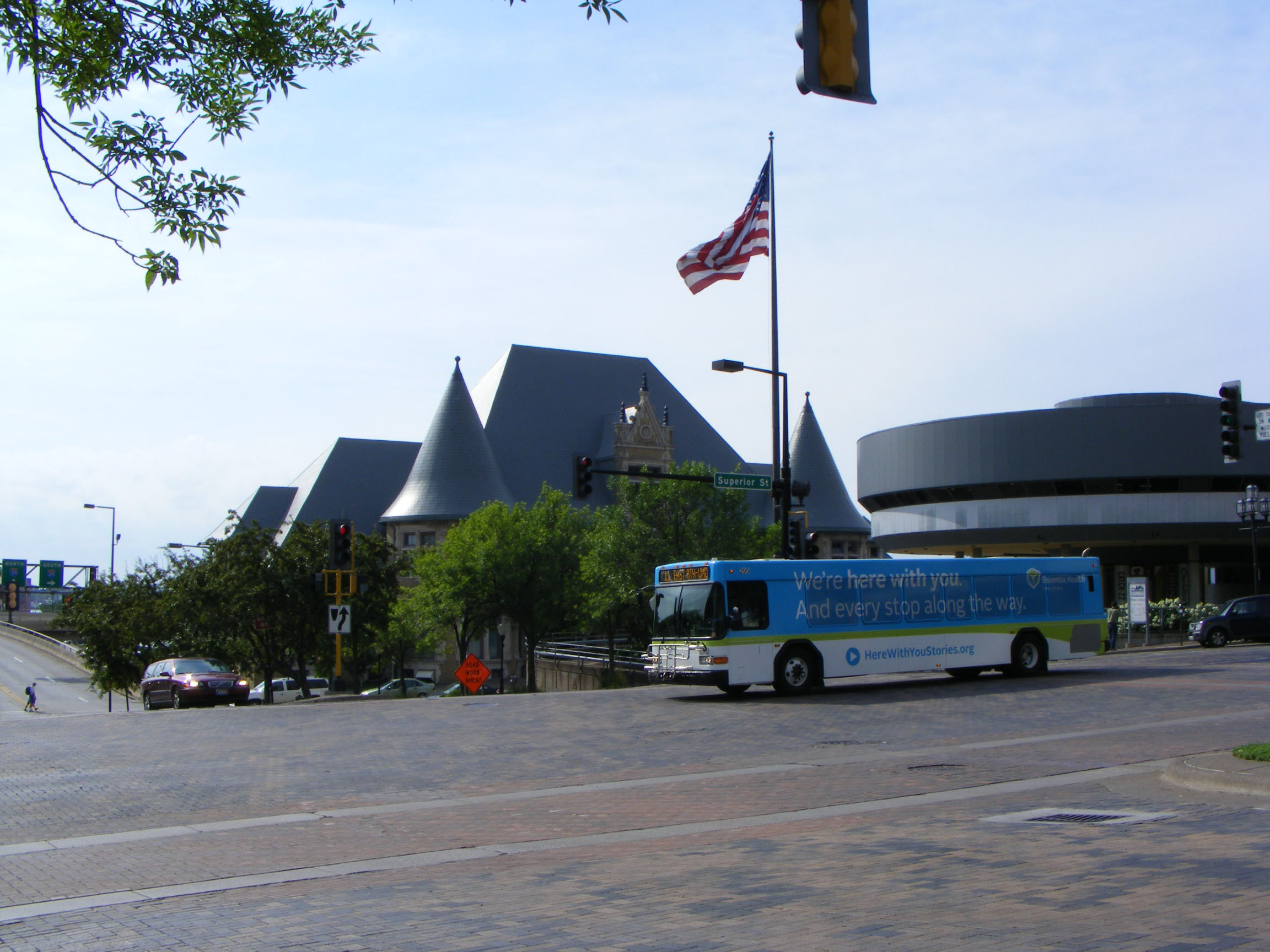 Sister 2010 delivery, 137, one of another batch of ten, is on the 2 to New Duluth from near the Downtown Transit Center. Prior to Advantages, DTA had some Gillig Phantoms, 35 in total, delivered in 1995 and 1997. It favoured GMC Fishbowls prior to that but did receive ten Flexibles in 1989, and ten TMC RTS in 1991.