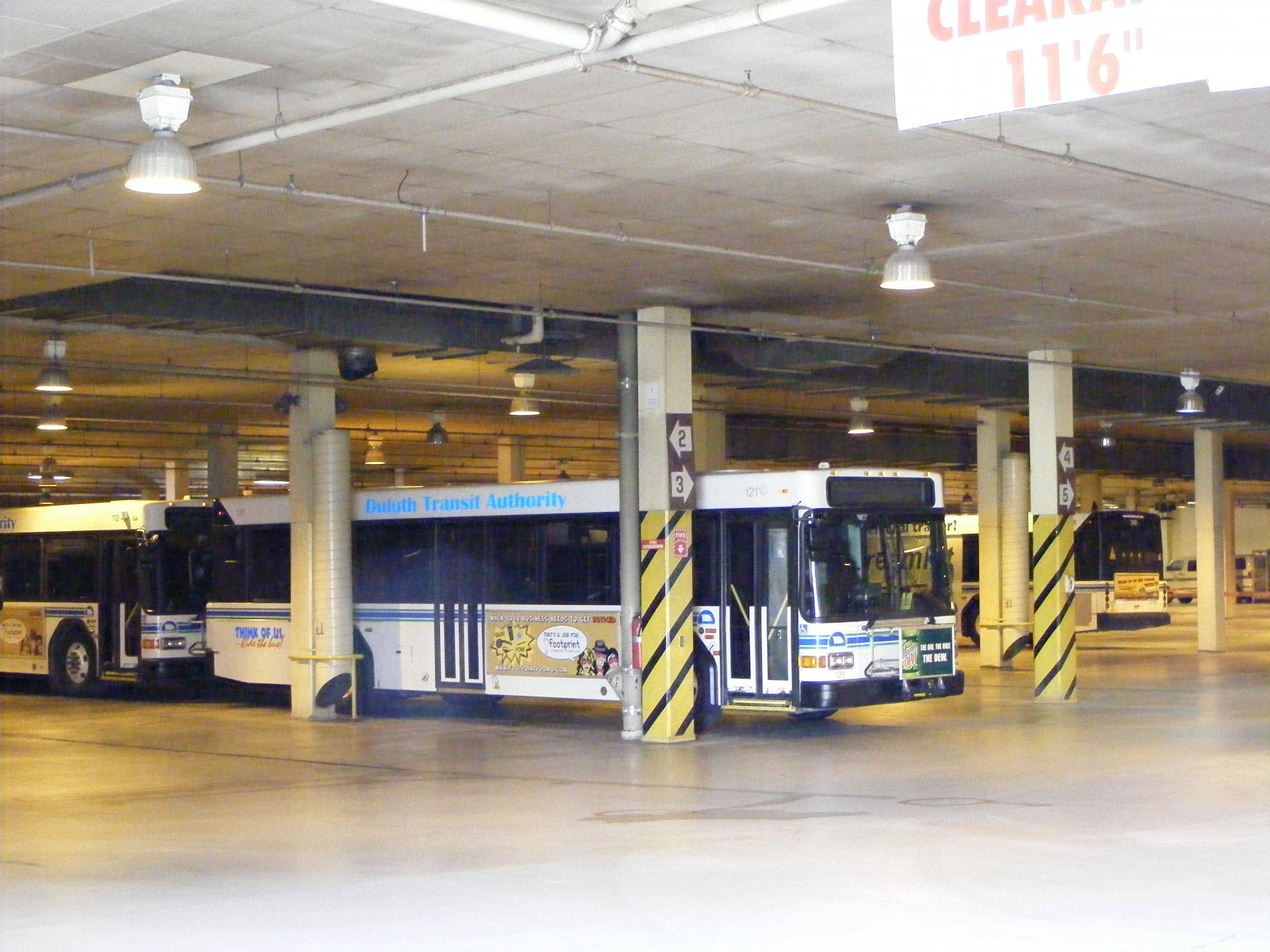 The Duluth depot with wall to wall Gilligs. Nearest the camera is 29ft 272 of 2002, which became Washington Uni 597 with 256 two further along, from the 1999 batch of forty footers.