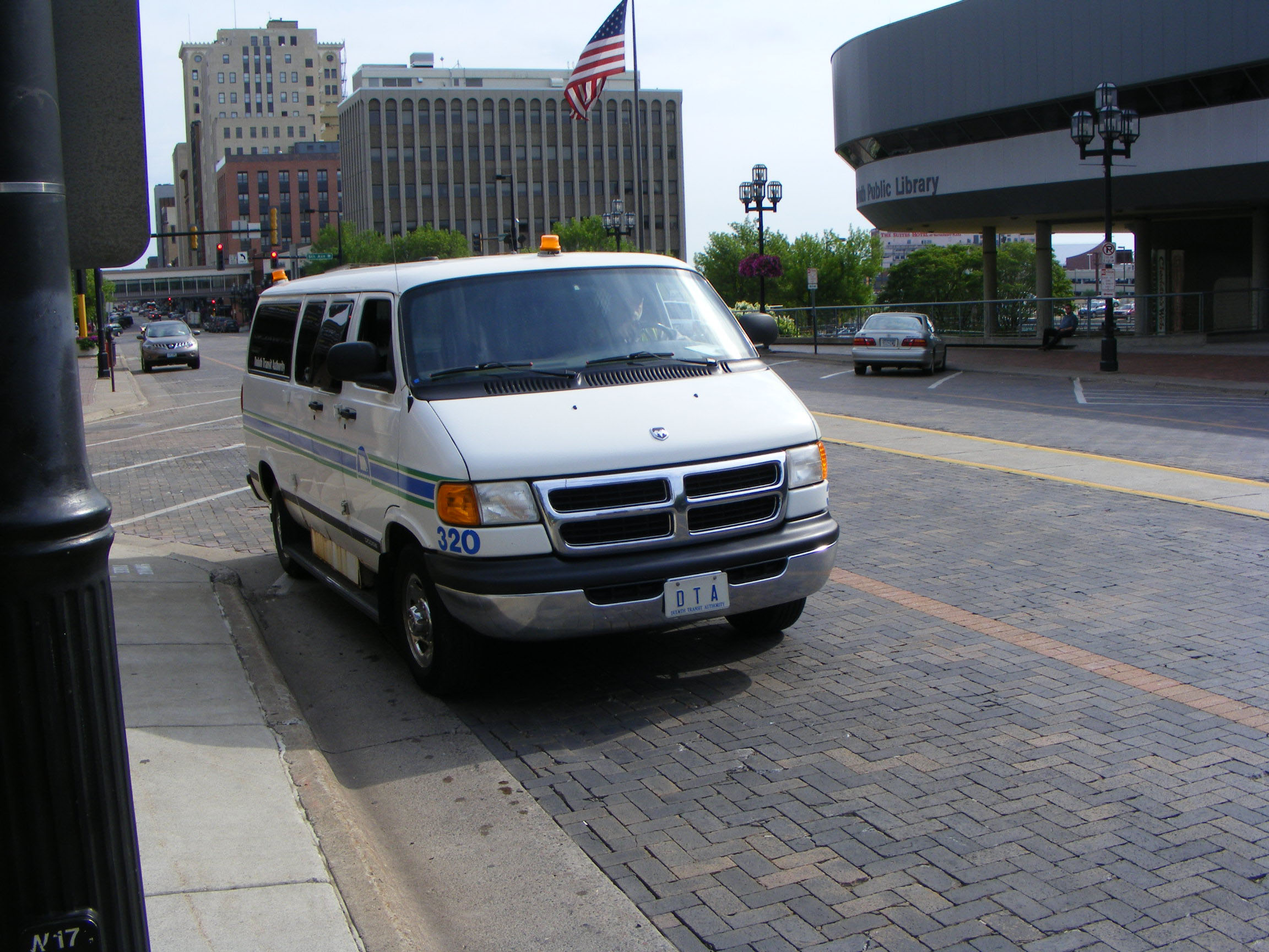 Chrysler van 320 was seen downtown, its purpose not known, a paratransit division does not appear to exist. It bears the coveted registration DTA.