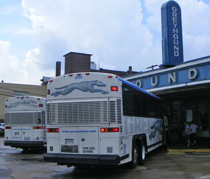 Greyhound 6401's opendoor is on the right whilst 6234 prepares for departure alongside.